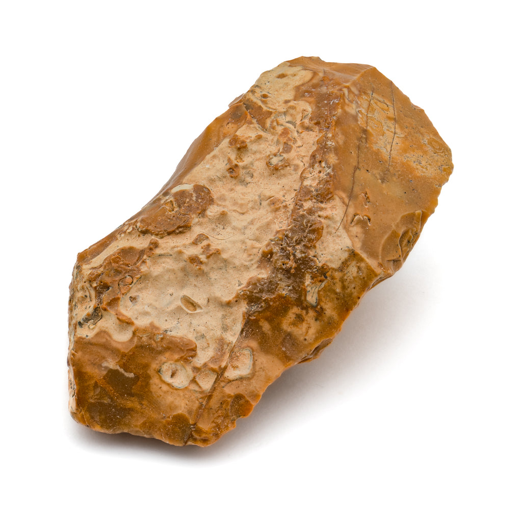 The earliest known tools date back 2,600,000 million years, deep into the Paleolithic and far older than any known human civilization. For the vast majority of human history, the stone tool was the presiding technology of its time. Though styles varied over time, the core method of creating a knapped stone tool remained relatively consistent through the Paleolithic. A starting rock of flint would have one side knapped to a sharp point by beating the edges with a hammerstone or antler. The other half was rounded out, giving the tool an almond look. This allowed it to fit snugly into one’s hand for both comfort and grip.