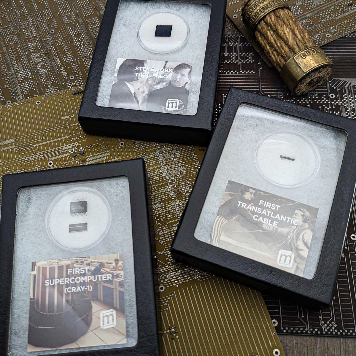 You can read more about each item on their individual product pages. This bundle offers all three, Steve Jobs Turtleneck, First Supercomputer Cray-1 IC Chip & Board, and First Transatlantic Cable at a single, discounted price! It's a special collection of curated history that we're so excited to share in the Mini Museum Shop!