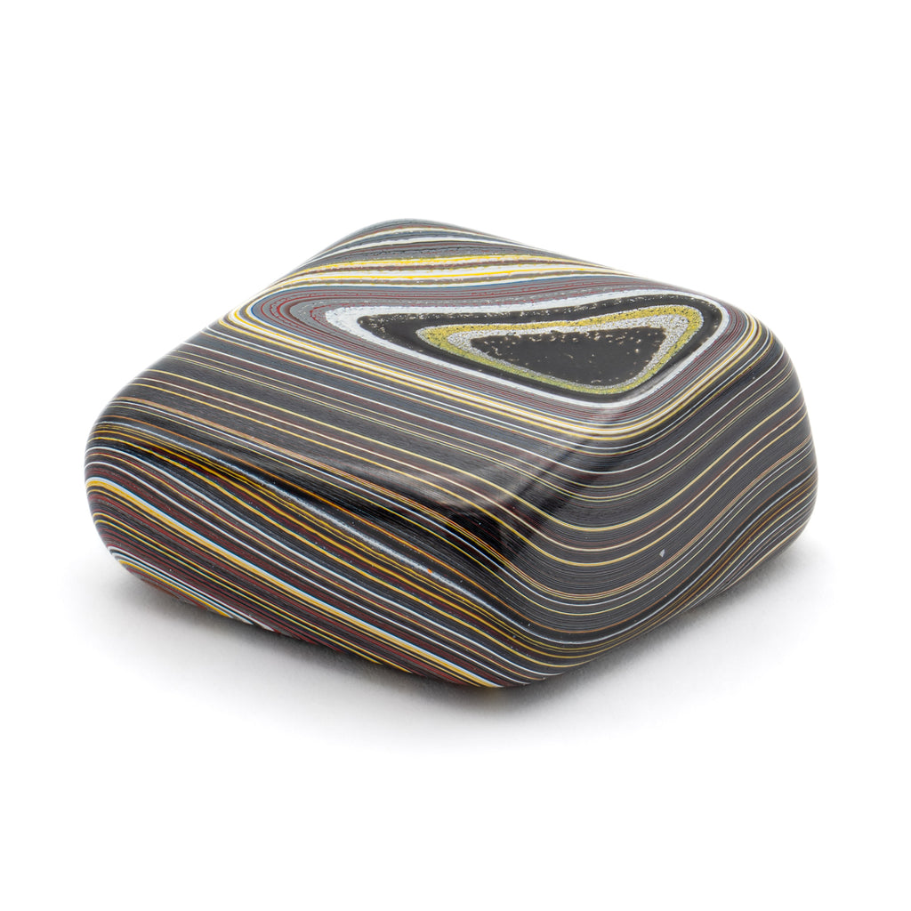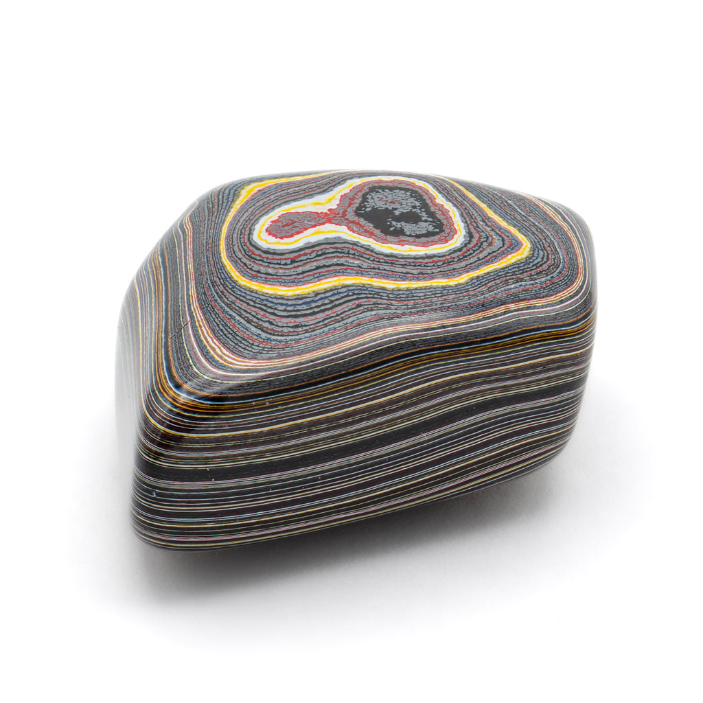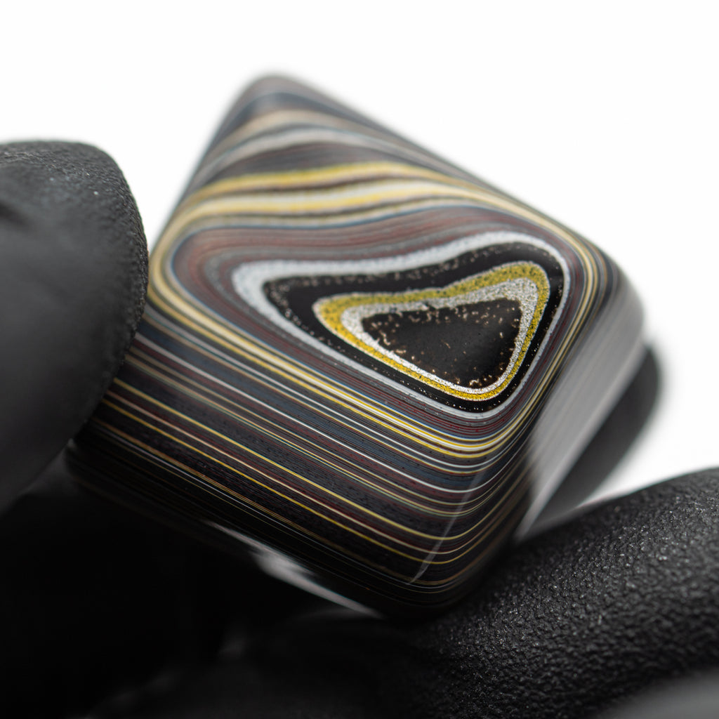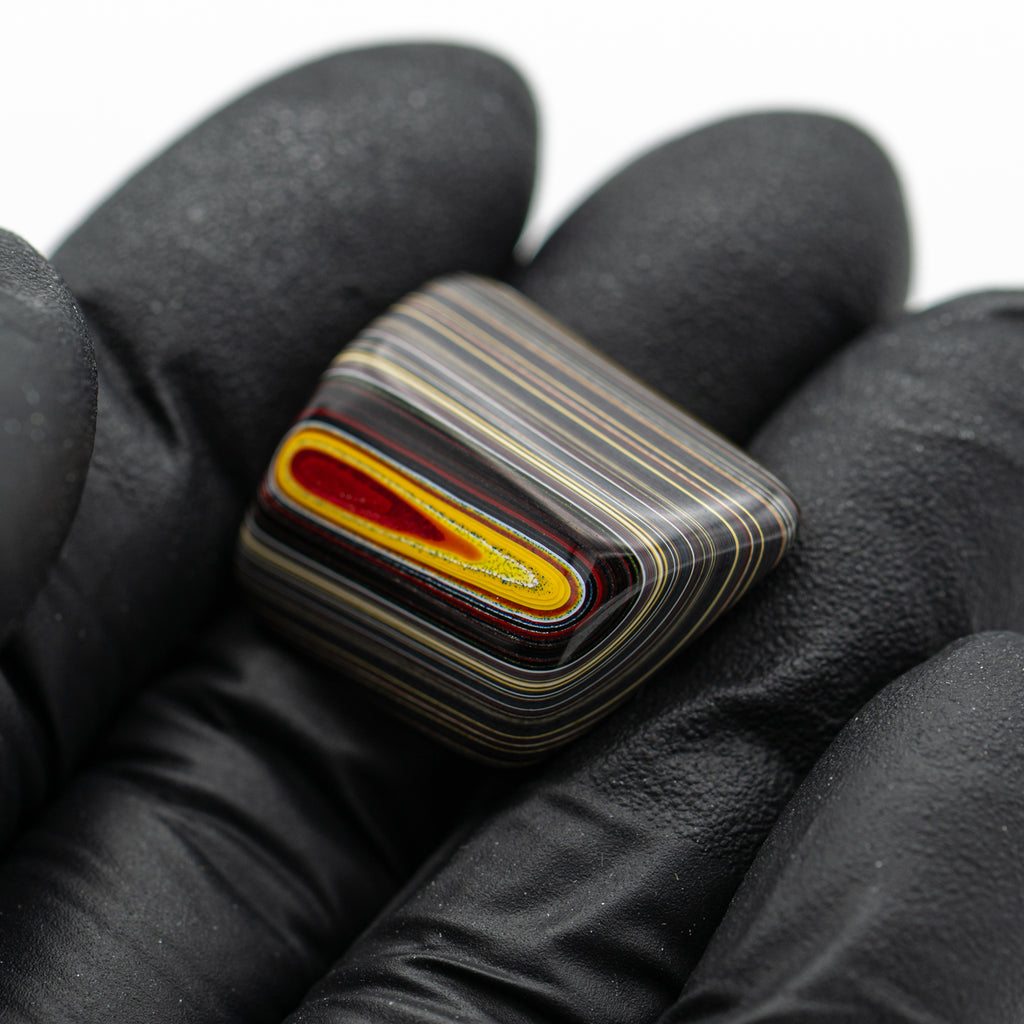 During the post-war Golden Age of Automobiles, factory workers from several different manufacturers discovered something curious. During the painting process, layers upon layers of automobile paint would accumulate into a layered and beautiful material. When heated and polished, this man-made "motor agate" reveals the colors of the cars that once passed through these factories.