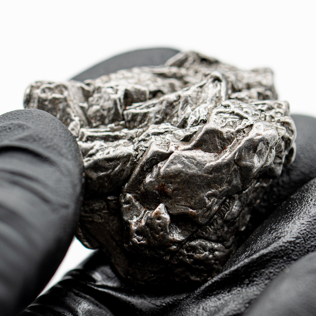 This specimen is a complete 35.77g Campo Del Cielo meteorite from Argentina. The IAB meteorite is thought to have fallen in 2500 BCE and was a source of valuable metals as well as an inspiration for creation myths. The impact area was originally called Piguem Nonralta by the locals, though Spanish colonists renamed it in 1576 CE as Campo del Cielo, or, "Field of Heaven."
