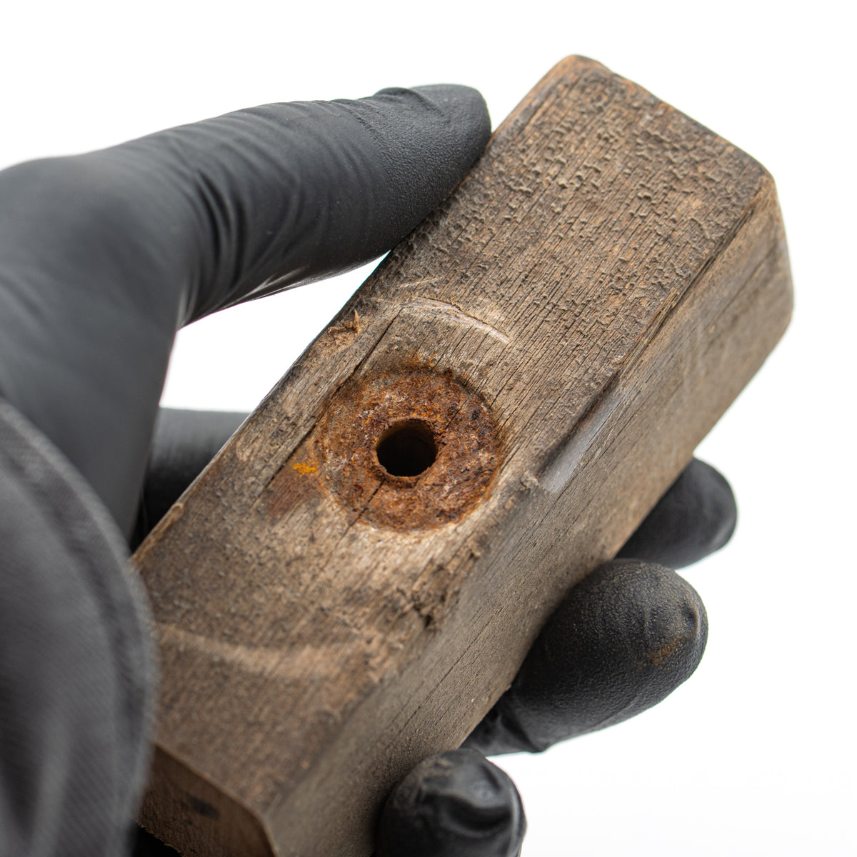 This specimen is a piece of an oak deck chair that once graced the decks of the RMS Lusitania, measuring 3.631". The chair was among the untold tonnes of flotsam and hundreds of bodies that washed ashore in Cobh, Ireland (known as Queenstown at the time) and was held on public display for decades. It was acquired at auction from Christie’s London office in late 2016.