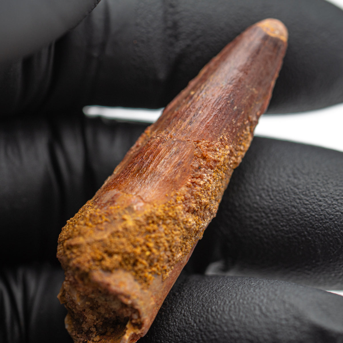 Please note: ALL Spinosaurus teeth will show some sign of repair. In addition, to protect the specimen during transit every Spinosaurus tooth is individually wrapped.