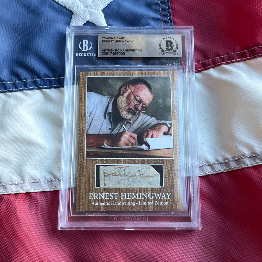 Offered for the first time ever–genuine handwritten words from renowned American novelist, short story writer and journalist, Ernest Hemingway, authenticated and encapsulated by Beckett.