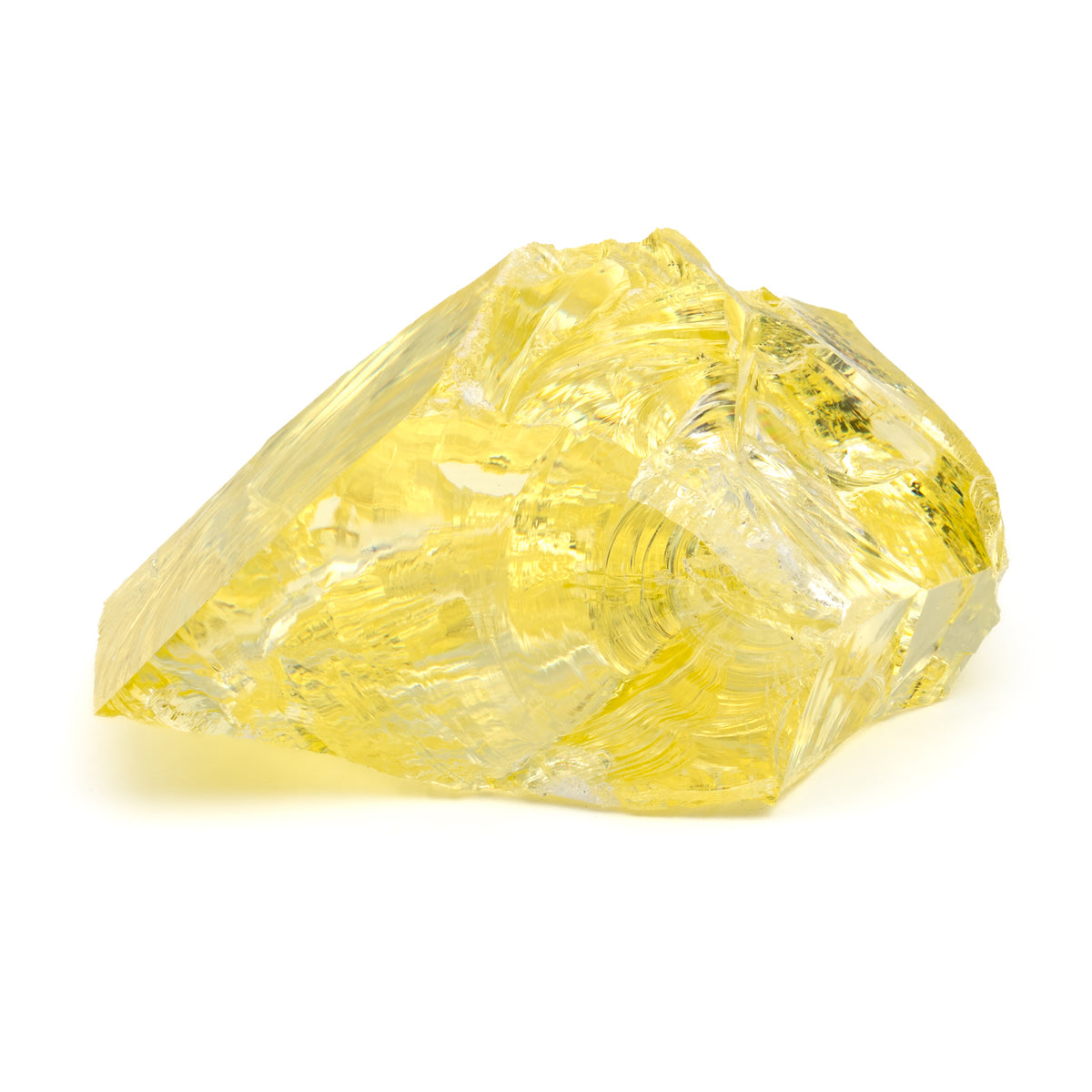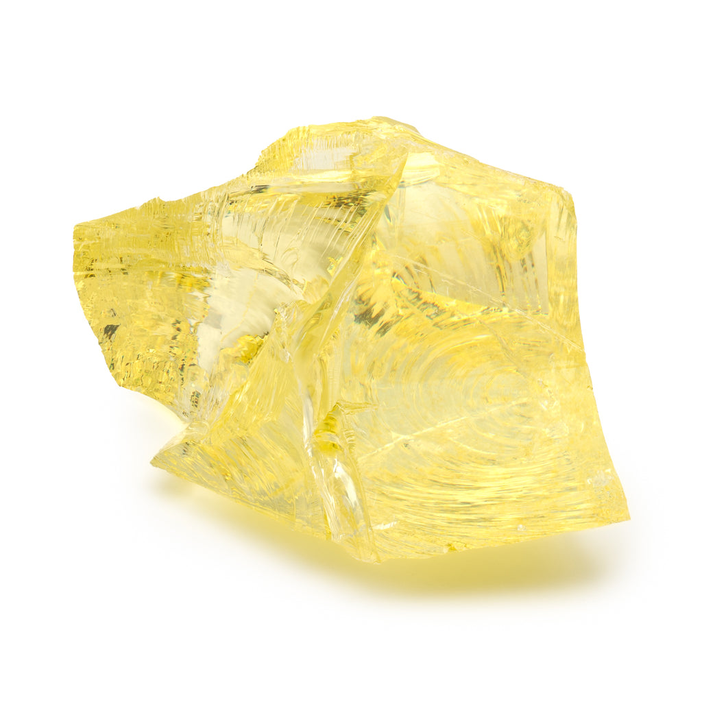 This specimen is a 125-gram fragment of a leaded glass shield window installed in the T Plant (221-T) Plutonium Recovery Building, the first and largest of two production bismuth-phosphate chemical separations plants used to extract plutonium from fuel rods irradiated in the Hanford Site’s reactors. The Plutonium produced here was used in both the Trinity test on July 16, 1945, and in the "Fat Man" atomic bomb used over Nagasaki, Japan on August 9, 1945.
