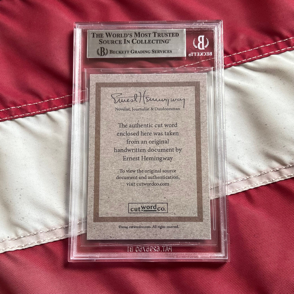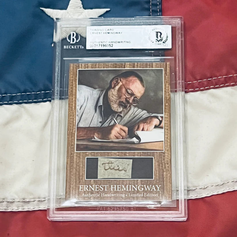 Zum ersten Mal überhaupt angeboten – echte, handgeschriebene Worte des berühmten amerikanischen Romanautors, Kurzgeschichtenschreibers und Journalisten Ernest Hemingway, von Beckett authentifiziert und verkapselt.