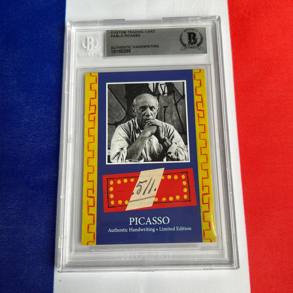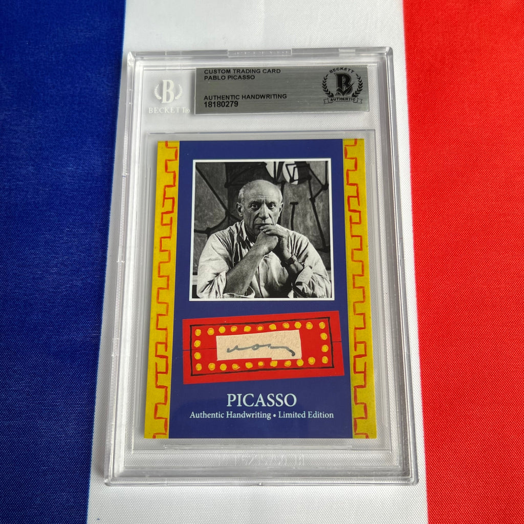 Zum ersten Mal überhaupt angeboten – echte Handschrift des legendären spanischen Künstlers und Meisters der modernen Kunst, Pablo Picasso, authentifiziert und verkapselt von (BAS) Beckett Authentication Services. Jedes handgeschriebene Wort wurde sorgfältig aus einem handgeschriebenen Brief entnommen, den Picasso an seinen Freund und Bankier Max Pellequer schickte.