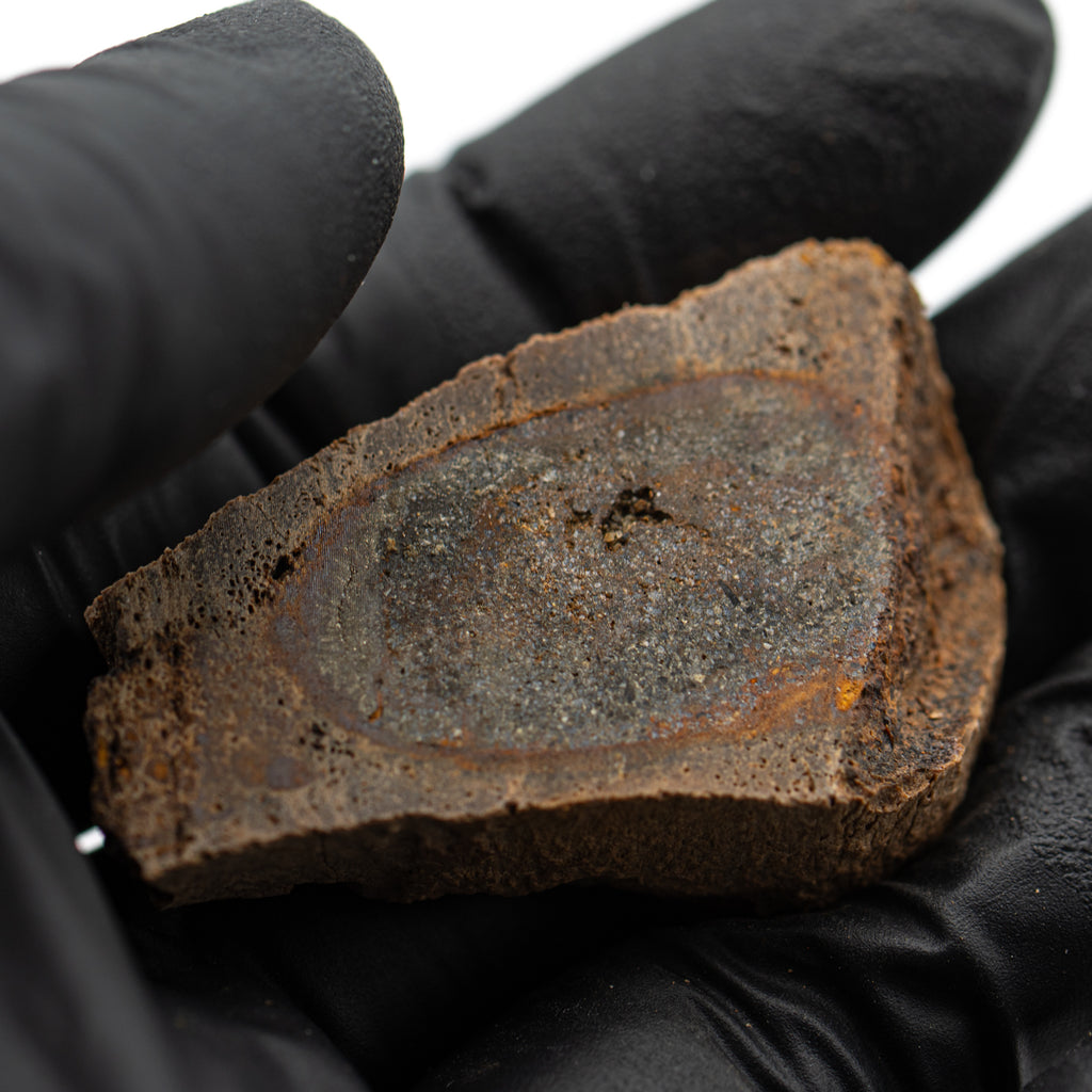This specimen is a chunk of a fossilized bone from a larger dromaeosaurid species recovered on private land in the Hell Creek Formation of South Dakota. It comes complete with an informational card that serves as statement of authenticity.