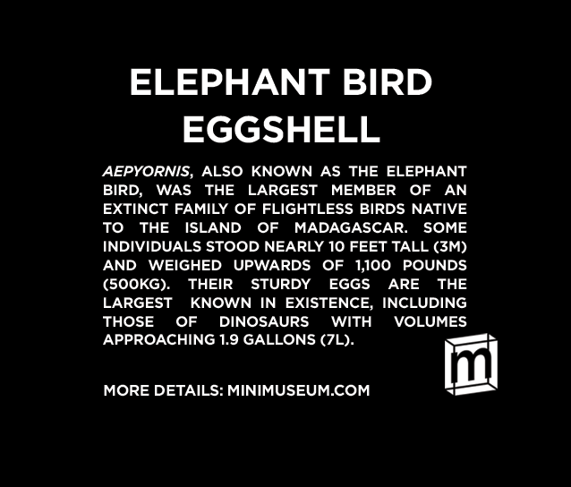 Die Eier des Elefantenvogels übertreffen alle anderen bekannten Vogeleier und wiegen fast 7 Liter. Mit dem 160-fachen Gewicht eines durchschnittlichen Huhns sind sie die schwersten Eier aller Wirbeltiere, Dinosaurier eingeschlossen.