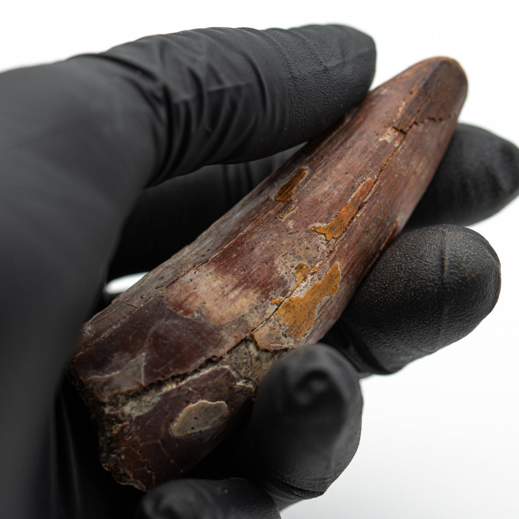 Bitte beachten Sie: ALLE Spinosaurus-Zähne weisen Anzeichen von Reparatur auf. Zum Schutz des Exemplars während des Transports ist jeder Spinosaurus-Zahn einzeln verpackt.