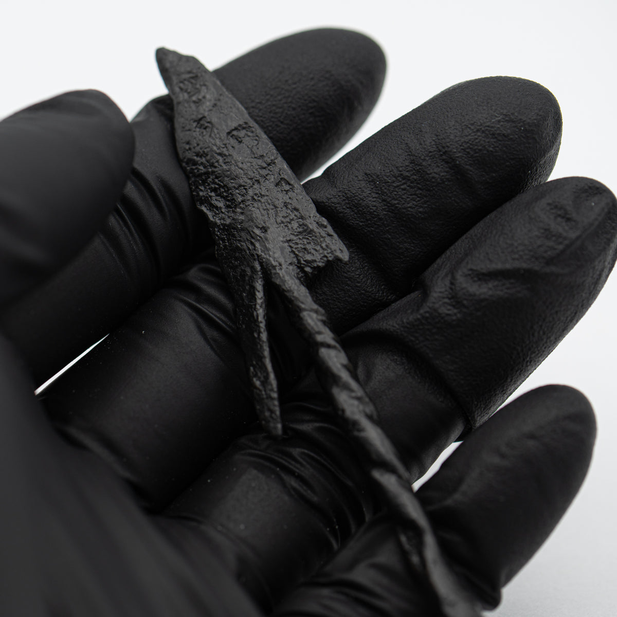 This specimen is a 3.20" Viking arrowhead fragment. The arrowhead dates to roughly 900 CE and was recovered from a site near the Black Sea.