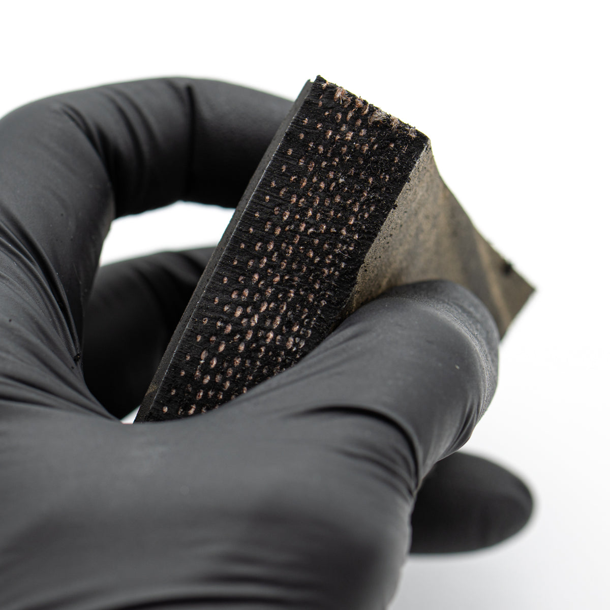 This specimen is a 2.610" mission-flown nose landing gear tire fragment from the Space Shuttle Columbia (OV-102). Serial number verification against public information indicates the tire was removed from service after Columbia's 13th mission (STS-52).