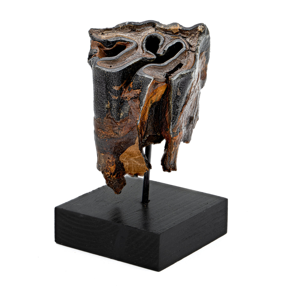 Wie oben abgebildet, ist der Zahn auf einem einfachen Holzständer montiert, lässt sich aber leicht entfernen. Die Montage erfolgt über ein Bohrloch. Wenn Sie also Ihren eigenen Ständer bauen möchten, sollte das ganz einfach sein.