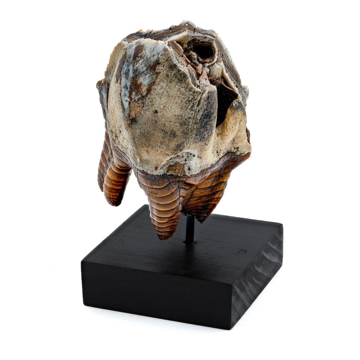 Bei diesem Exemplar handelt es sich um einen 8,8 cm langen Wollnashornzahn, der in Sibirien gefunden wurde. Das geschätzte Alter beträgt 20.000 Jahre.