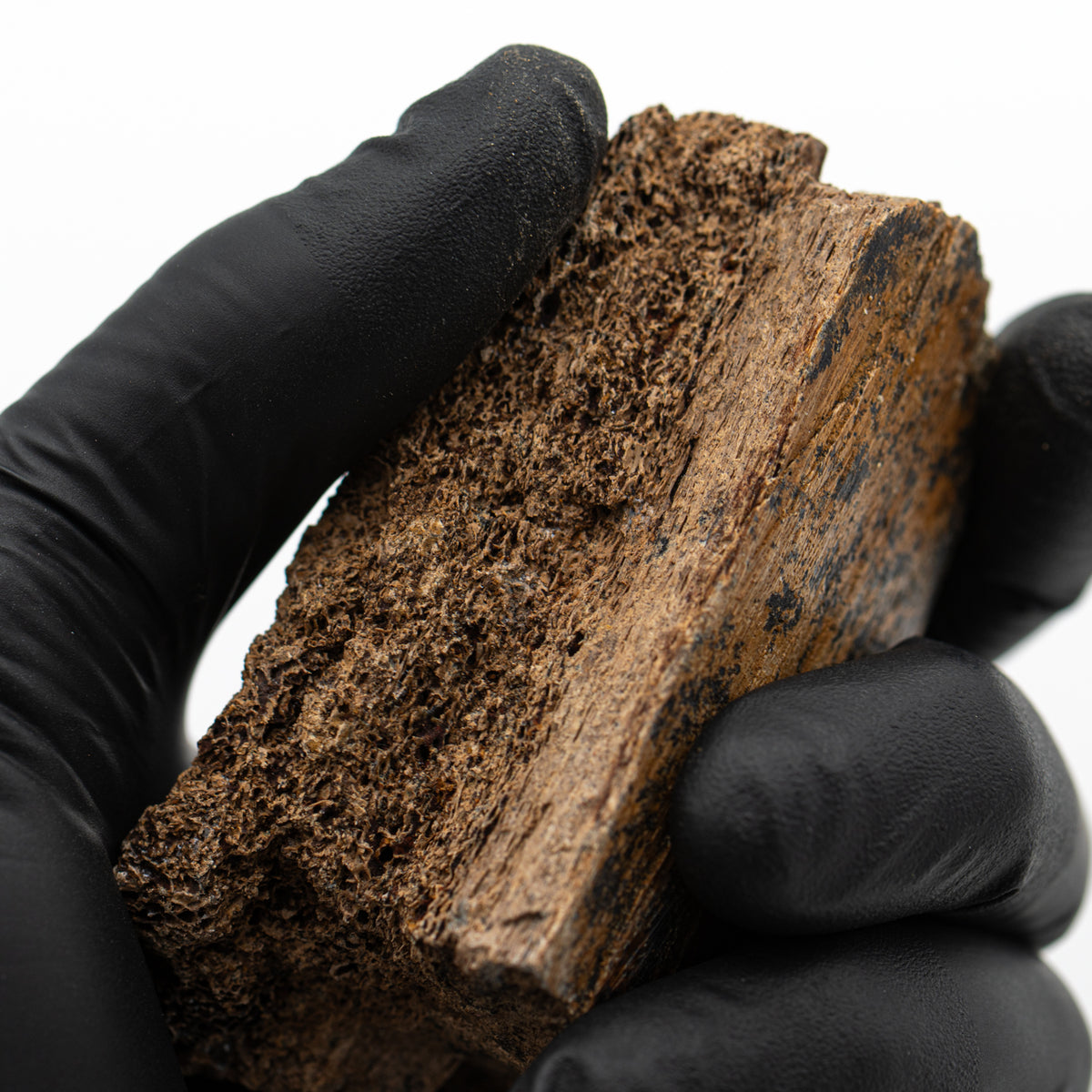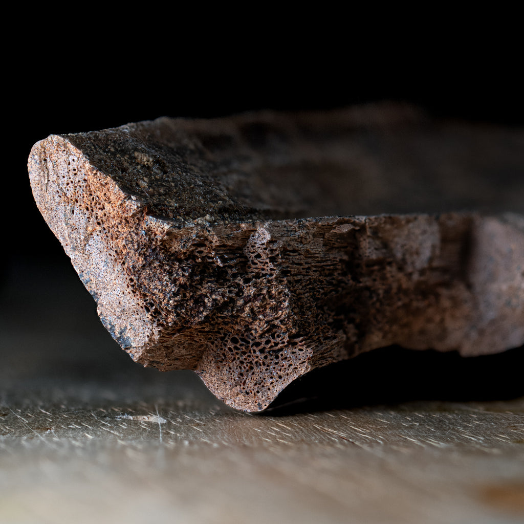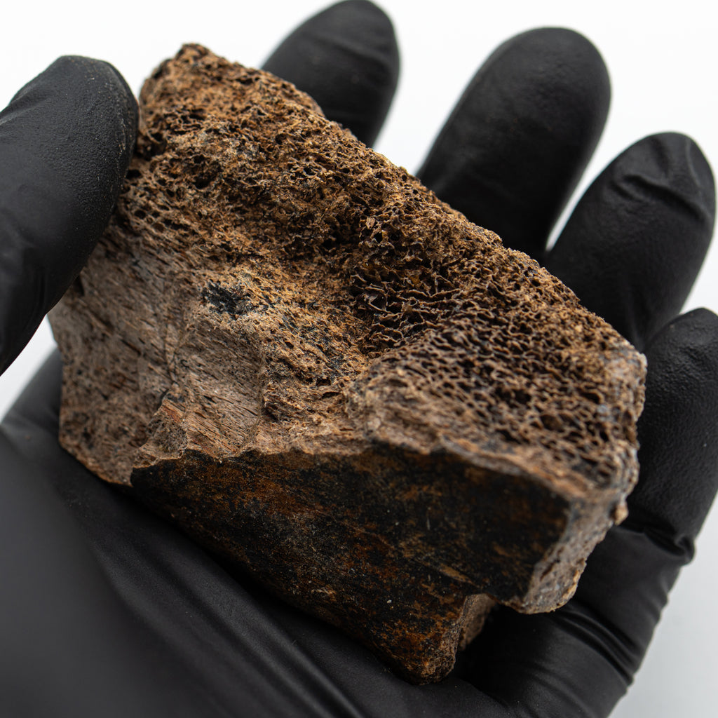 This specimen is a piece of a Hadrosaur fossil bone, measuring 3.063". It was recovered on private land in South Dakota's Hell Creek Formation and dates to 66 million years ago.