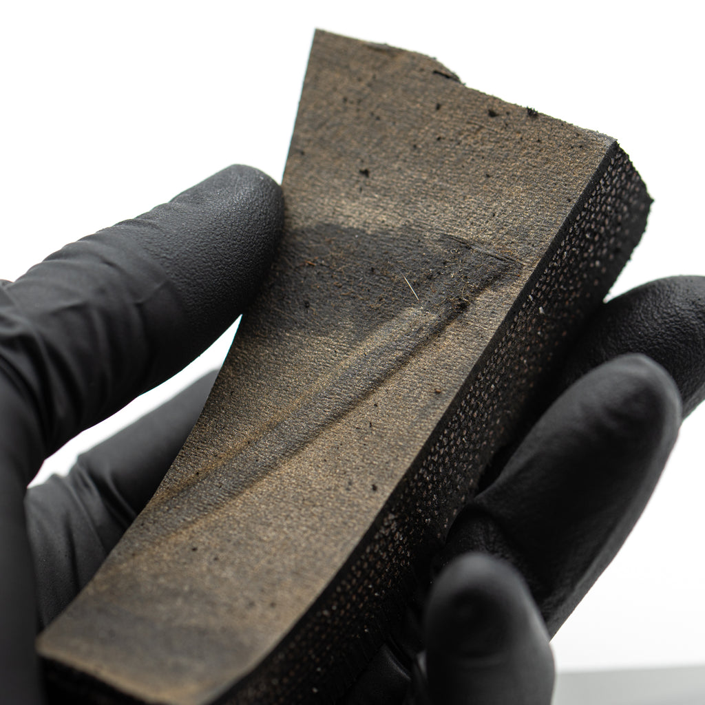 Bei diesem Exemplar handelt es sich um ein 2,59 Zoll großes Fragment eines Bugfahrwerksreifens der Raumfähre Columbia (OV-102), der während der Mission geflogen wurde. Die Überprüfung der Seriennummer anhand öffentlicher Informationen zeigt, dass der Reifen nach der 13. Mission der Columbia (STS-52) außer Dienst gestellt wurde.