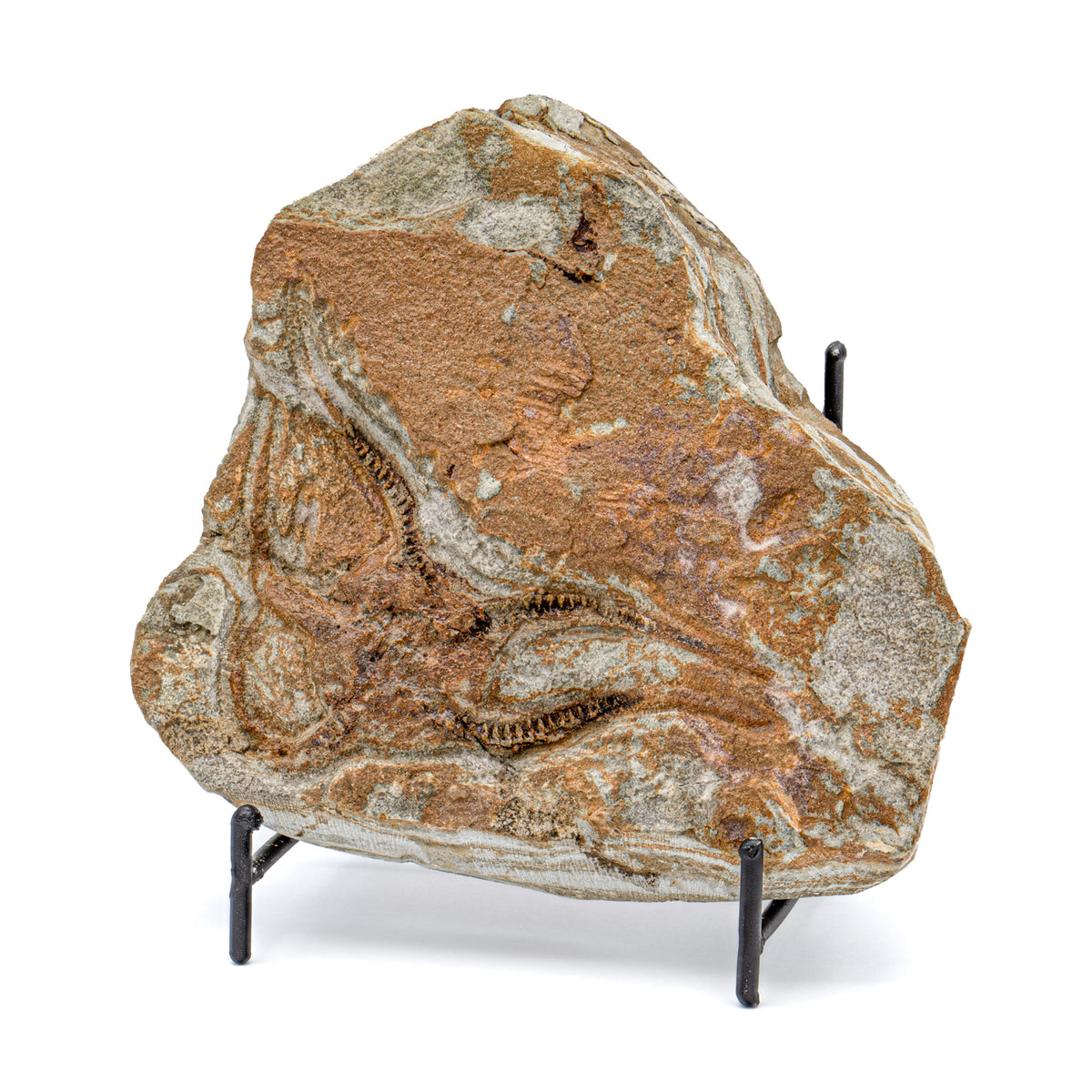 Bei diesem Exemplar handelt es sich um einen einzigartigen fossilen Schlangenstern, der mit einem Ständer zur Präsentation geliefert wird. Eine Informationskarte, die als Echtheitszertifikat dient, ist ebenfalls enthalten.
