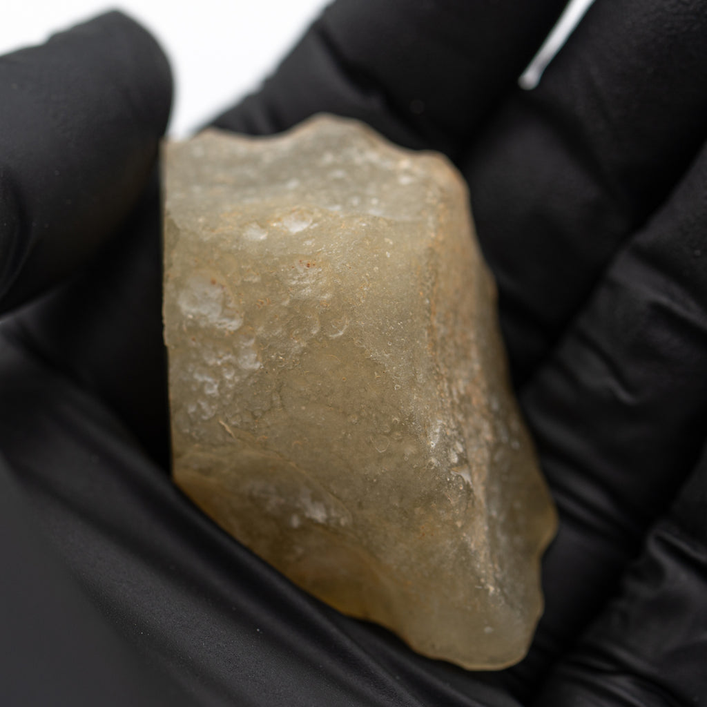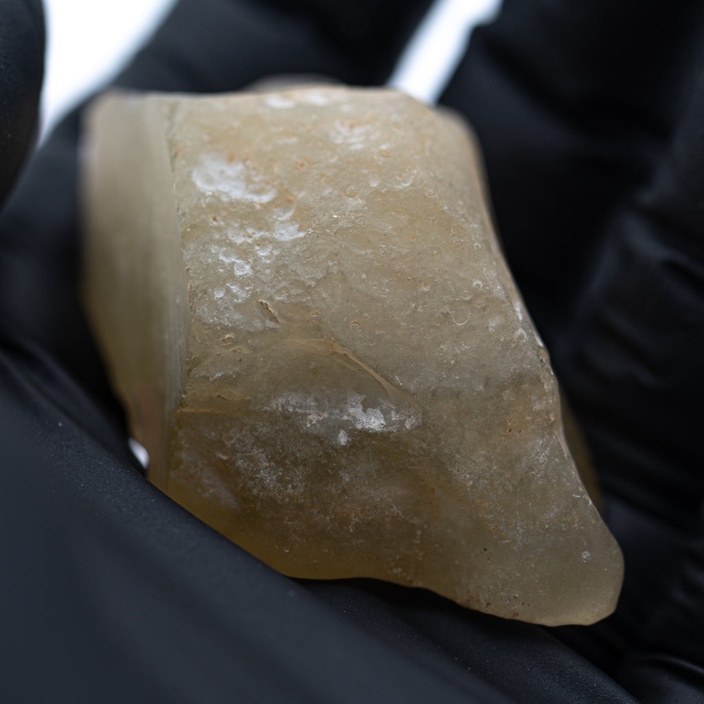 Libysches Wüstenglas wird als Tektit klassifiziert, ein Gestein, das durch den Einschlag eines Meteoriten entsteht. Die enorme Hitze und der Druck eines Einschlags können die umgebenden Sedimente zu einem neuen Material verschmelzen. Im Fall des libyschen Wüstenglases wurden die Sandpartikel der Sahara augenblicklich zu diesem wunderschönen gelbgrünen Glas geschmolzen.