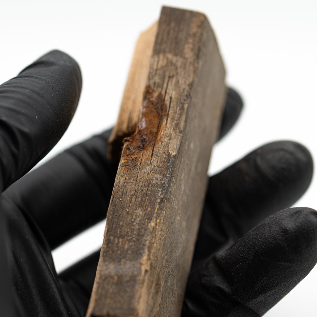 This specimen is a piece of an oak deck chair that once graced the decks of the RMS Lusitania, measuring 3.159". The chair was among the untold tonnes of flotsam and hundreds of bodies that washed ashore in Cobh, Ireland (known as Queenstown at the time) and was held on public display for decades. It was acquired at auction from Christie’s London office in late 2016.