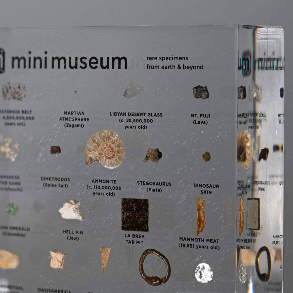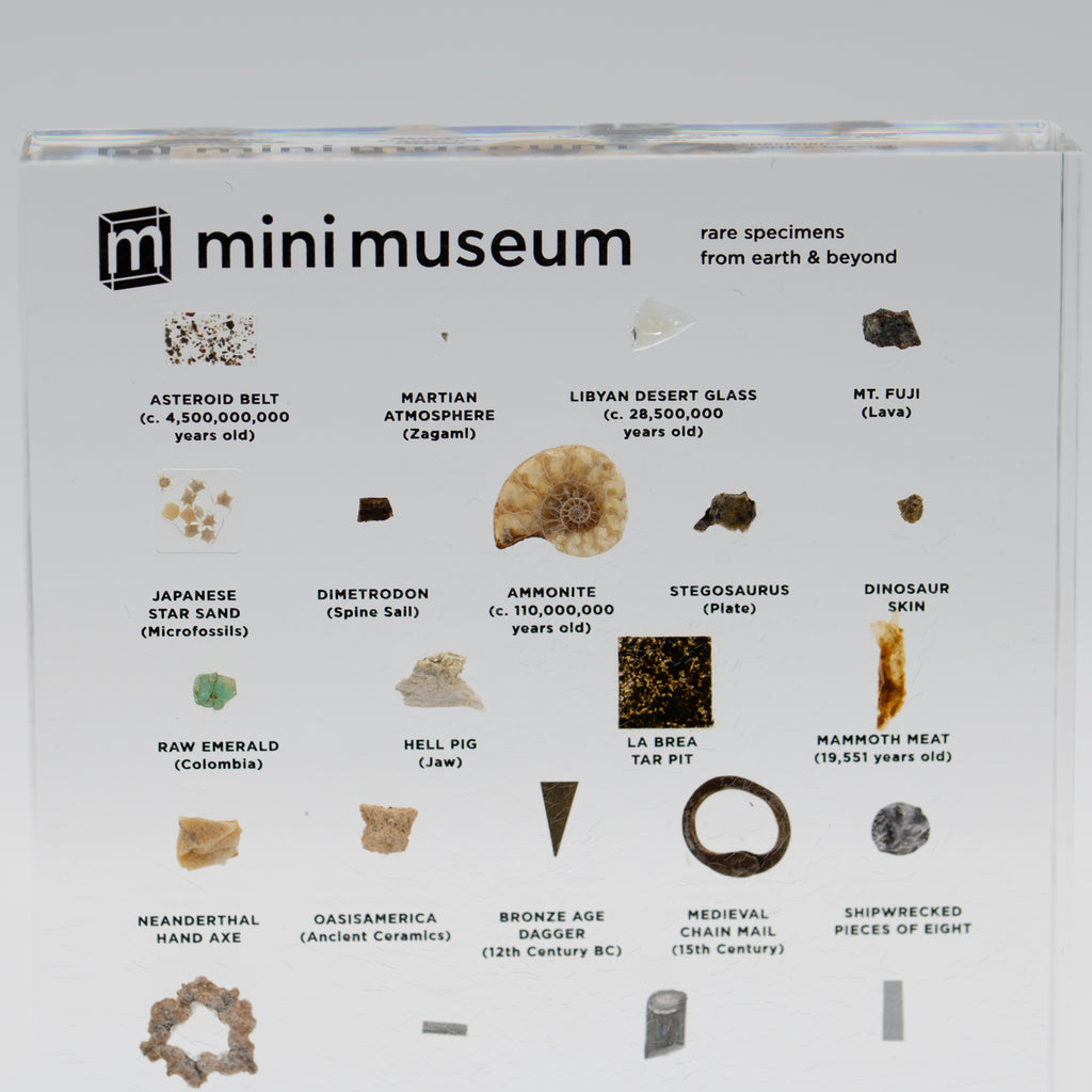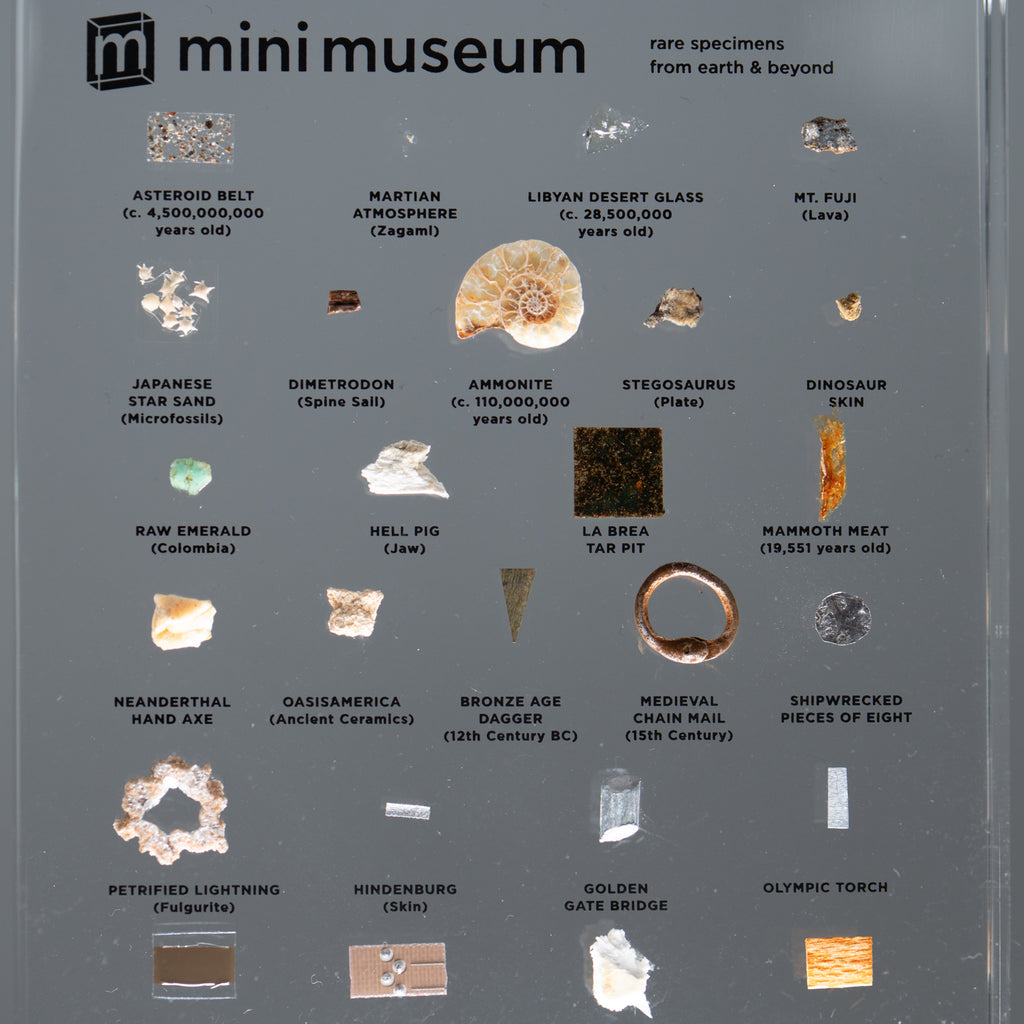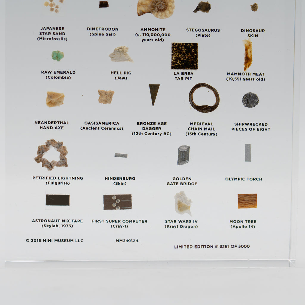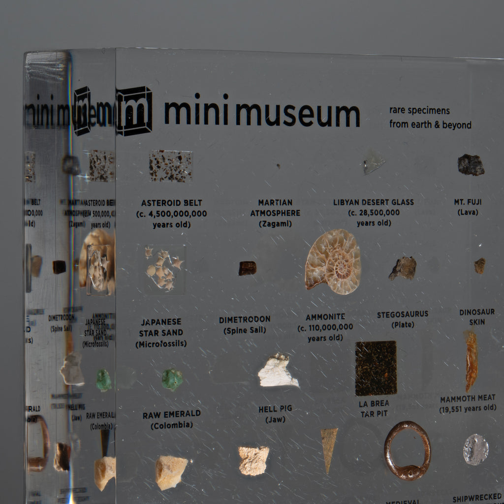 Das Mini Museum ist ein handgefertigtes Sammlerstück in limitierter Auflage. Die einzigartigen Exponate sind kunstvoll arrangiert und klar beschriftet. Die gesamte Sammlung ist in Lucite-Acryl eingefasst und soll Generationen inspirieren.
