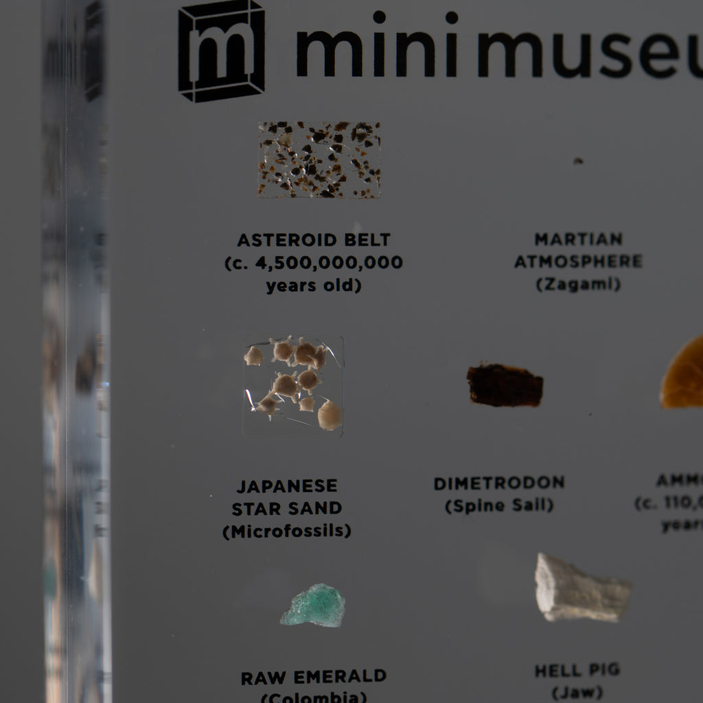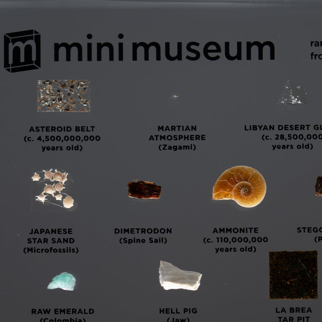 Das Mini Museum ist ein handgefertigtes Sammlerstück in limitierter Auflage. Die einzigartigen Exponate sind kunstvoll arrangiert und klar beschriftet. Die gesamte Sammlung ist in Lucite-Acryl eingefasst und soll Generationen inspirieren.