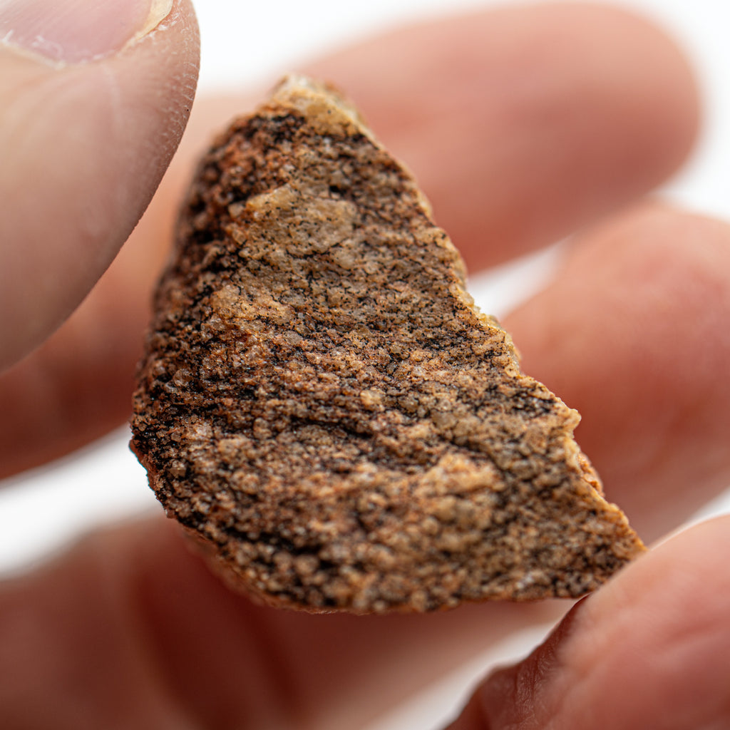 This specimen is a 1.363" rock that was recovered as part of the Jack Hills formation north of Perth in Western Australia. The rough, sedimentary layers of the Jack Hills formation are 3.3 billion years old, but they also contain much older zircon crystals across a range of time from 3.6 to nearly 4.4 billion years old.