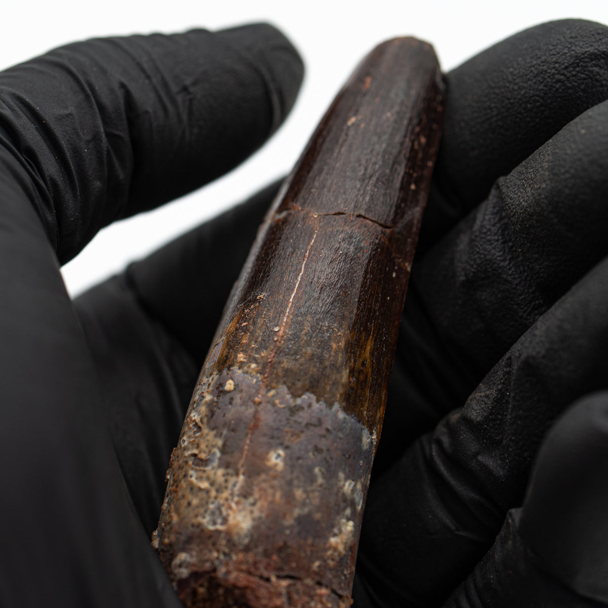 Bitte beachten Sie: ALLE Spinosaurus-Zähne weisen Anzeichen von Reparatur auf. Zum Schutz des Exemplars während des Transports ist jeder Spinosaurus-Zahn einzeln verpackt.