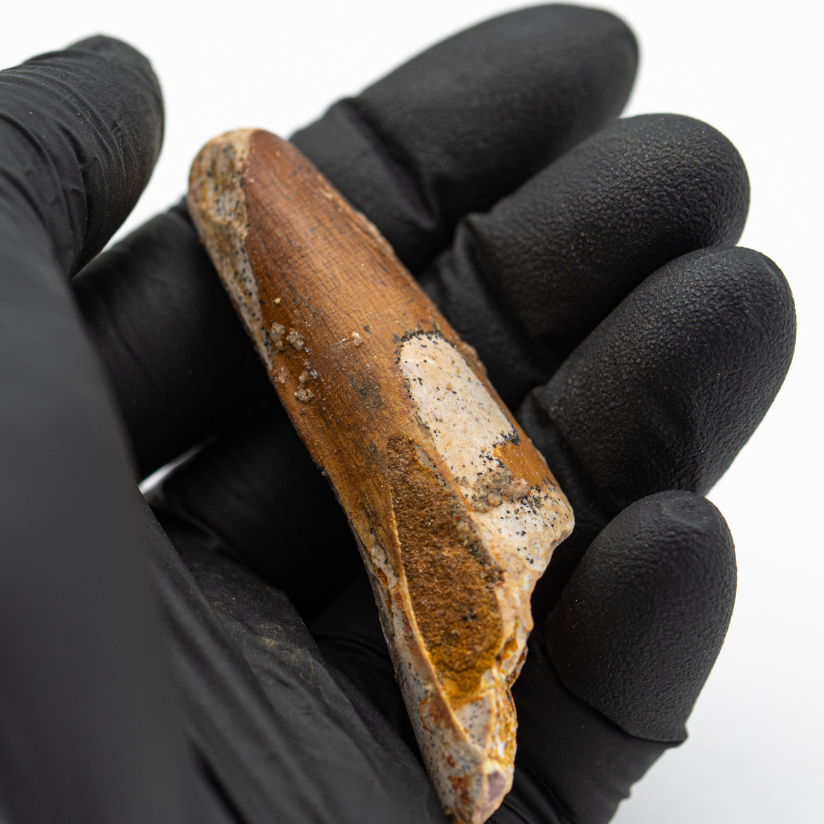 Bitte beachten Sie: ALLE Spinosaurus-Zähne weisen Anzeichen von Reparatur auf. Zum Schutz des Exemplars während des Transports ist jeder Spinosaurus-Zahn einzeln verpackt.