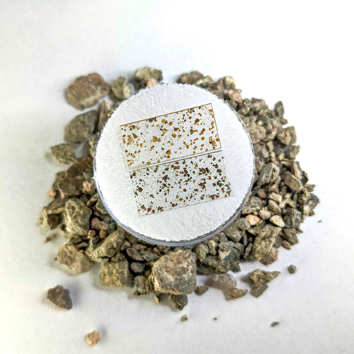 This specimen is a selection of material from Tejon Pass in California, where the boundary is exposed to the surface. It contains geologic material from both plates, set side by side to represent the fault itself.