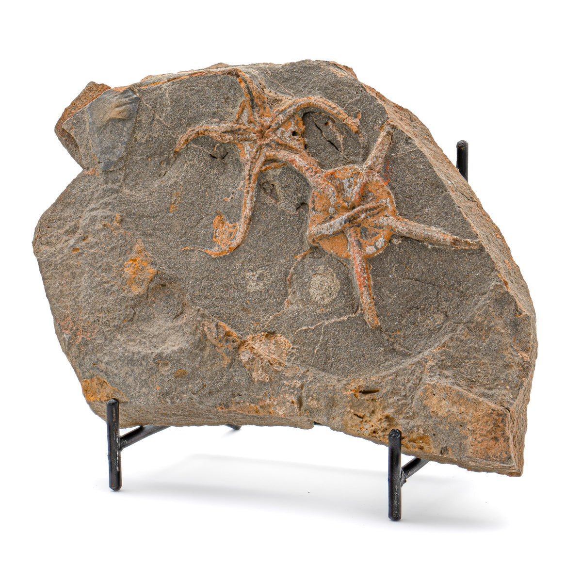 This specimen is a 6.57" pair of Ordovician Ophiurida Brittle Stars, which lived over 440 million years ago. Members of the genus could be found all over the world and resembled modern brittle stars in shape and behavior. These particular starfish come from the Ktaoua Formation in Morocco.