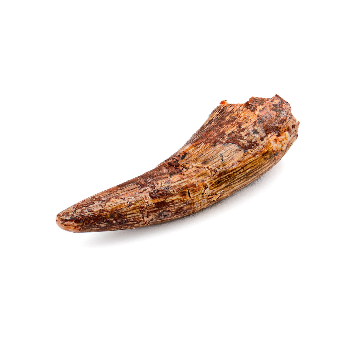 This specimen is an individual phytosaur tooth measuring 1.36" in length. This particular specimen was uncovered from the Redonda formation in New Mexico. It is roughly 210,000,000 years old. Redondasaurus is the primary genus found in the area. These creatures were some of the most evolutionarily advanced members of the phytosaur family.