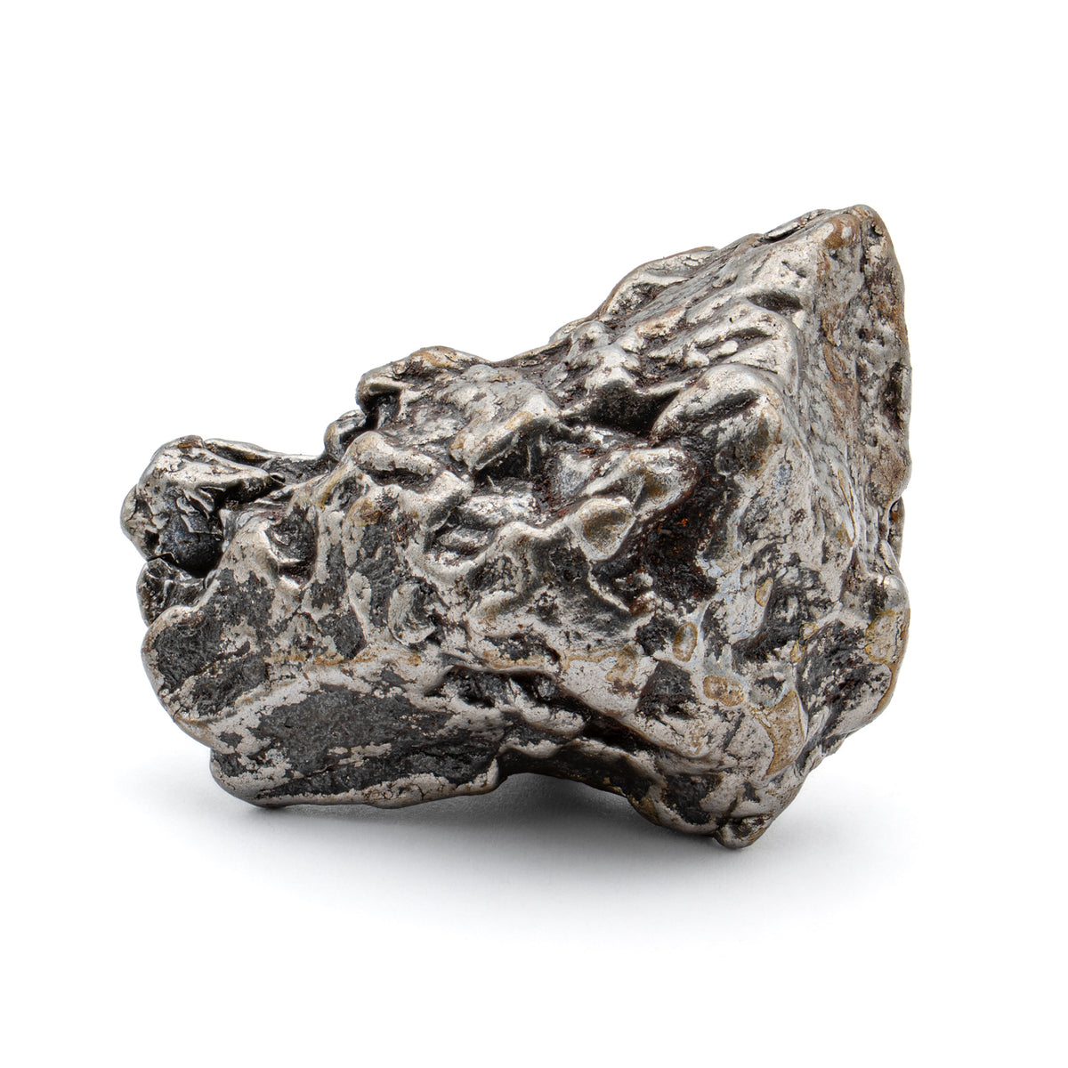 This specimen is a complete 85.05g Campo Del Cielo meteorite from Argentina. The IAB meteorite is thought to have fallen in 2500 BCE and was a source of valuable metals as well as an inspiration for creation myths. The impact area was originally called Piguem Nonralta by the locals, though Spanish colonists renamed it in 1576 CE as Campo del Cielo, or, "Field of Heaven."