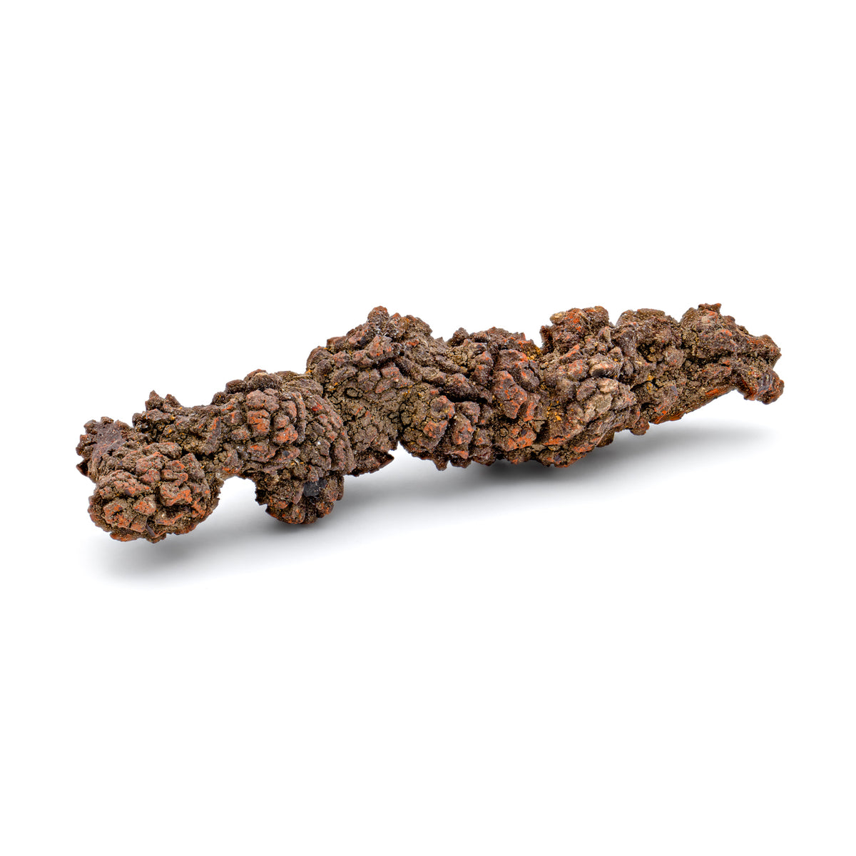 This specimen is a 100,000,000 year old item called a sideritic coprolite. Based on its shape and location, they are suggested to be fossilized droppings from Cretaceous era turtles... though scientists also wonder if they could be casts of their intestines or abnormal iron formations.