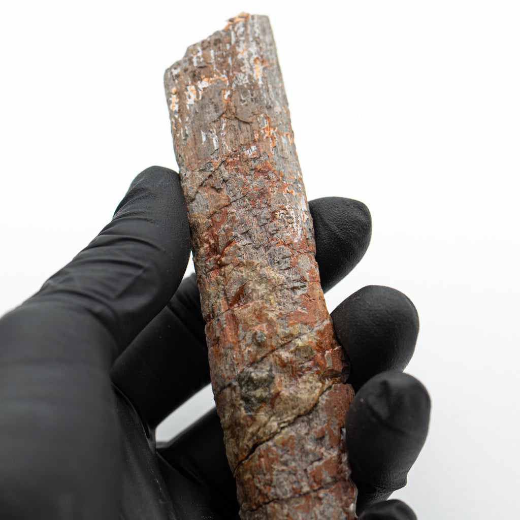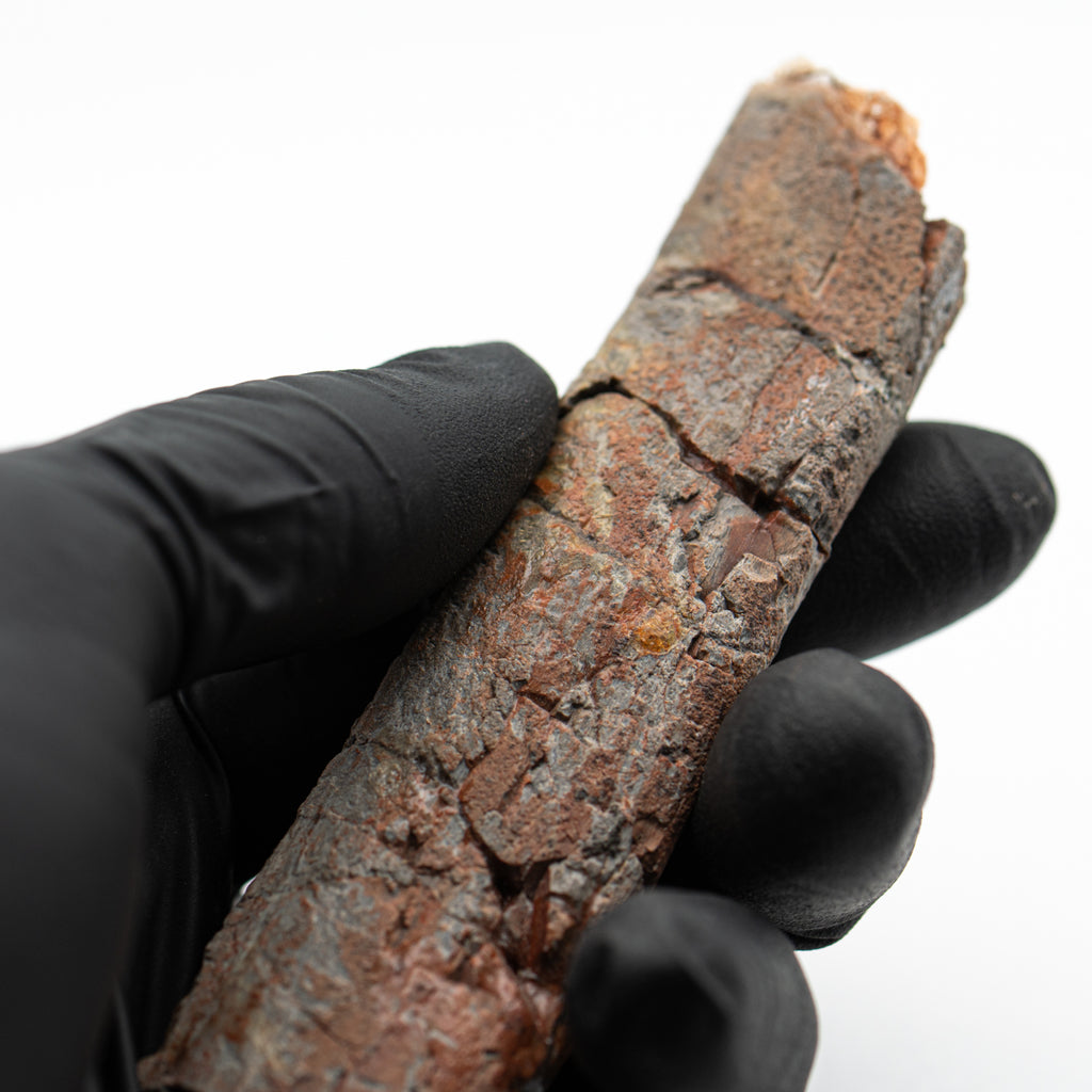 This specimen is a 4.117" fossil bone section from an Allosaurus recovered on private land from the Morrison Formation in Wyoming. It dates to 145 million years ago, during the Jurassic Period.