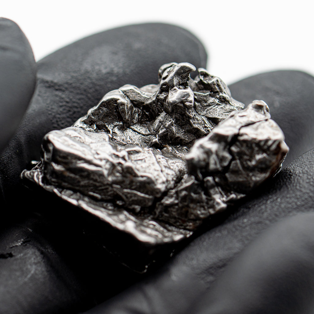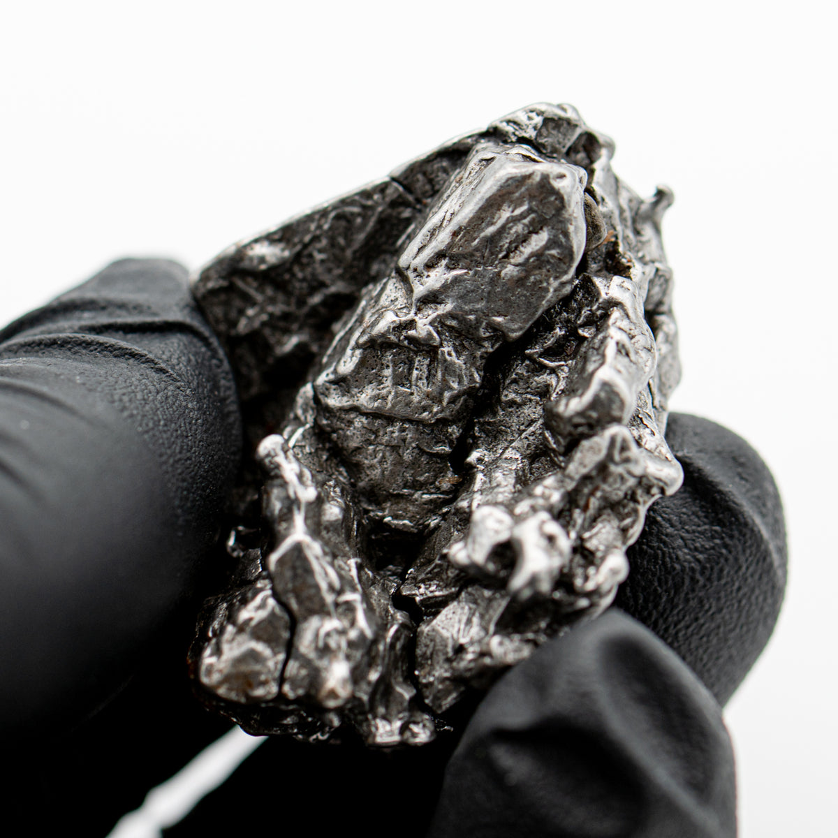 This specimen is a complete 35.56g Campo Del Cielo meteorite from Argentina. The IAB meteorite is thought to have fallen in 2500 BCE and was a source of valuable metals as well as an inspiration for creation myths. The impact area was originally called Piguem Nonralta by the locals, though Spanish colonists renamed it in 1576 CE as Campo del Cielo, or, "Field of Heaven."