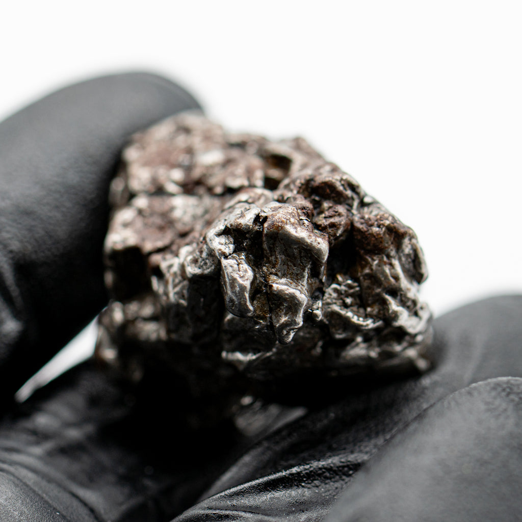 This specimen is a complete 37.22g Campo Del Cielo meteorite from Argentina. The IAB meteorite is thought to have fallen in 2500 BCE and was a source of valuable metals as well as an inspiration for creation myths. The impact area was originally called Piguem Nonralta by the locals, though Spanish colonists renamed it in 1576 CE as Campo del Cielo, or, "Field of Heaven."