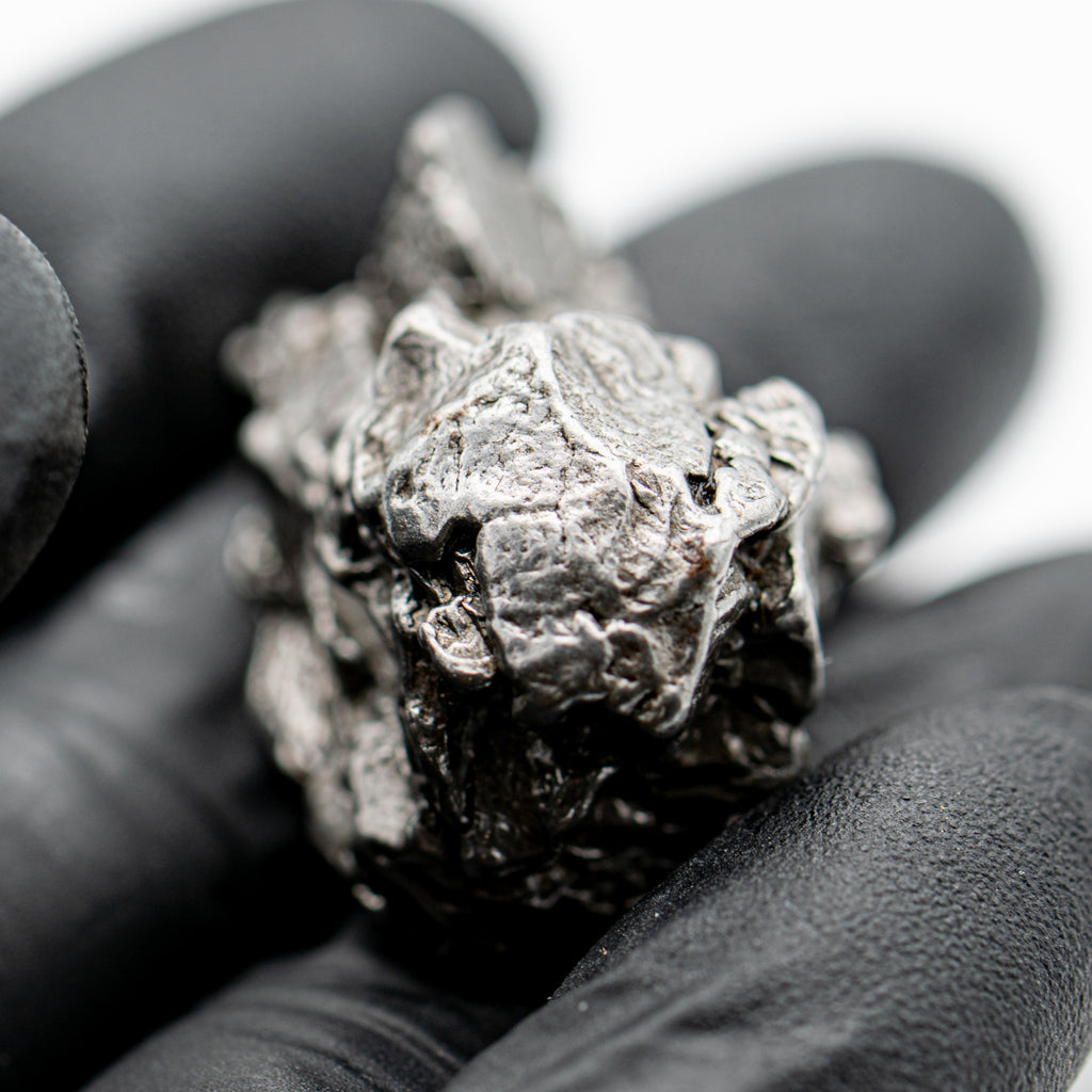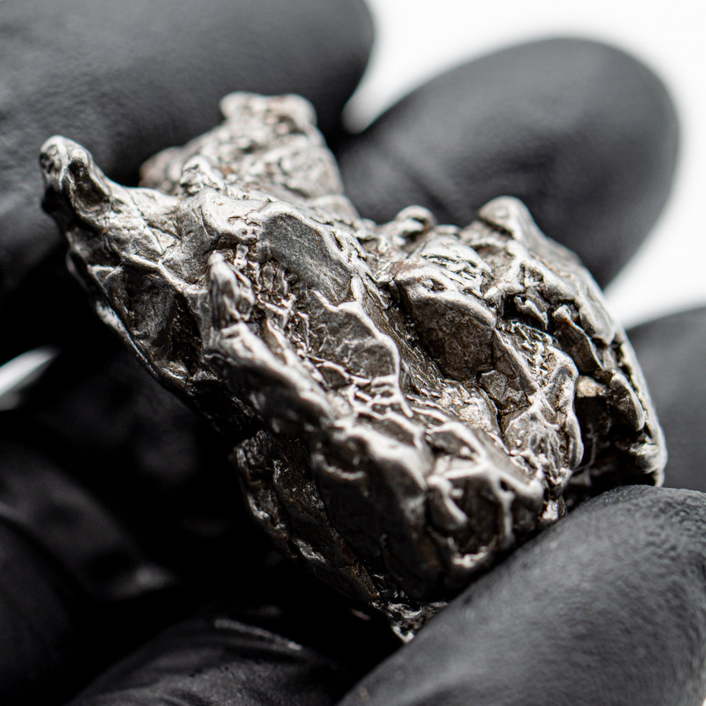 This specimen is a complete 39.59g Campo Del Cielo meteorite from Argentina. The IAB meteorite is thought to have fallen in 2500 BCE and was a source of valuable metals as well as an inspiration for creation myths. The impact area was originally called Piguem Nonralta by the locals, though Spanish colonists renamed it in 1576 CE as Campo del Cielo, or, "Field of Heaven."