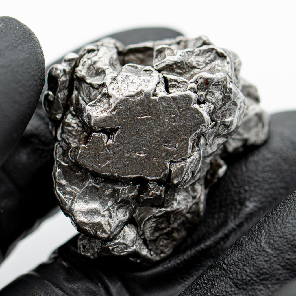 This specimen is a complete 44.30g Campo Del Cielo meteorite from Argentina. The IAB meteorite is thought to have fallen in 2500 BCE and was a source of valuable metals as well as an inspiration for creation myths. The impact area was originally called Piguem Nonralta by the locals, though Spanish colonists renamed it in 1576 CE as Campo del Cielo, or, "Field of Heaven."