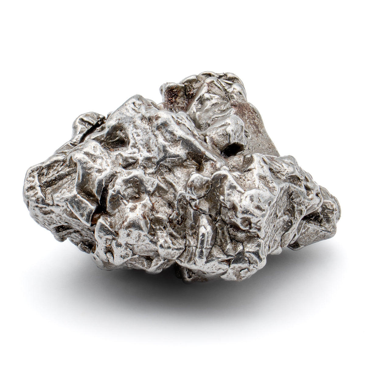 This specimen is a complete 60.12g Campo Del Cielo meteorite from Argentina. The IAB meteorite is thought to have fallen in 2500 BCE and was a source of valuable metals as well as an inspiration for creation myths. The impact area was originally called Piguem Nonralta by the locals, though Spanish colonists renamed it in 1576 CE as Campo del Cielo, or, "Field of Heaven."