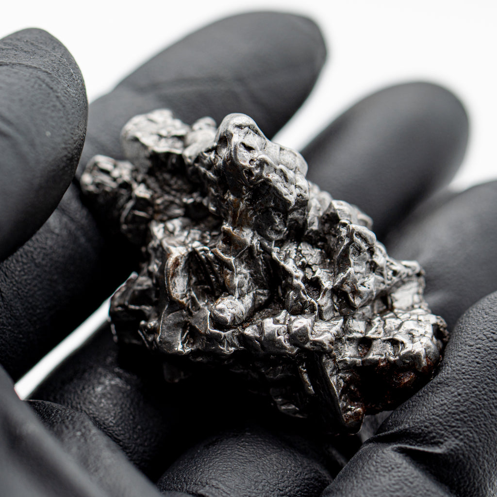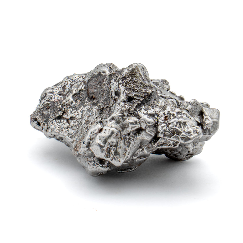 This specimen is a complete 61.55g Campo Del Cielo meteorite from Argentina. The IAB meteorite is thought to have fallen in 2500 BCE and was a source of valuable metals as well as an inspiration for creation myths. The impact area was originally called Piguem Nonralta by the locals, though Spanish colonists renamed it in 1576 CE as Campo del Cielo, or, "Field of Heaven."