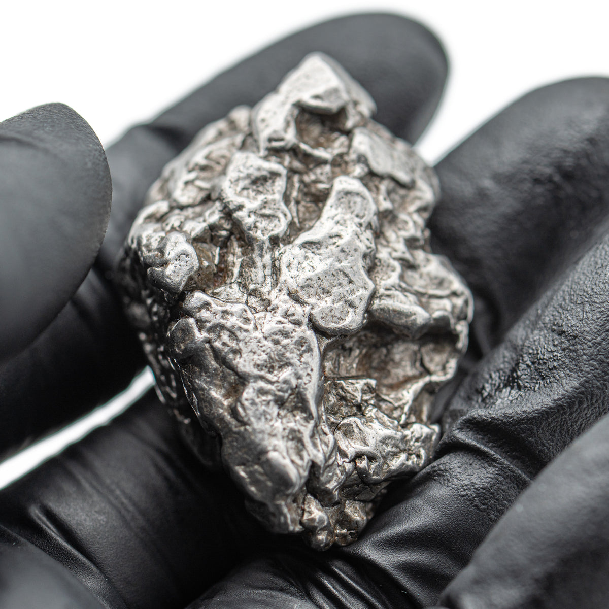 This specimen is a complete 64.18g Campo Del Cielo meteorite from Argentina. The IAB meteorite is thought to have fallen in 2500 BCE and was a source of valuable metals as well as an inspiration for creation myths. The impact area was originally called Piguem Nonralta by the locals, though Spanish colonists renamed it in 1576 CE as Campo del Cielo, or, "Field of Heaven."