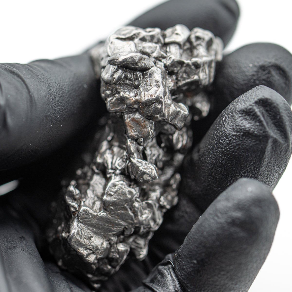 This specimen is a complete 75.07g Campo Del Cielo meteorite from Argentina. The IAB meteorite is thought to have fallen in 2500 BCE and was a source of valuable metals as well as an inspiration for creation myths. The impact area was originally called Piguem Nonralta by the locals, though Spanish colonists renamed it in 1576 CE as Campo del Cielo, or, "Field of Heaven."