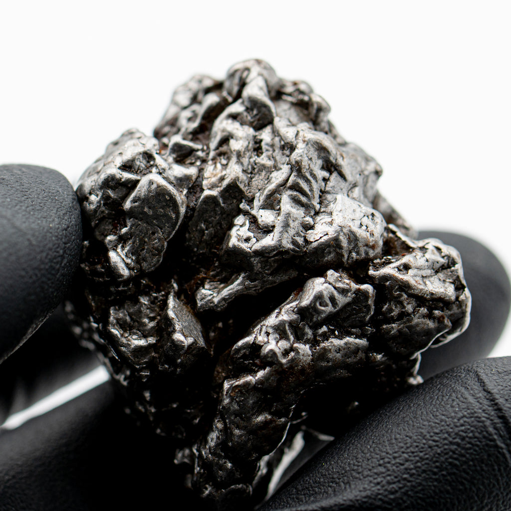 This specimen is a complete 79.82g Campo Del Cielo meteorite from Argentina. The IAB meteorite is thought to have fallen in 2500 BCE and was a source of valuable metals as well as an inspiration for creation myths. The impact area was originally called Piguem Nonralta by the locals, though Spanish colonists renamed it in 1576 CE as Campo del Cielo, or, "Field of Heaven."