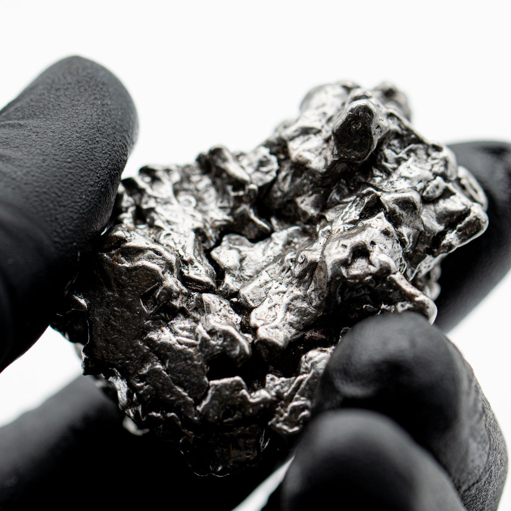 This specimen is a complete 80.65g Campo Del Cielo meteorite from Argentina. The IAB meteorite is thought to have fallen in 2500 BCE and was a source of valuable metals as well as an inspiration for creation myths. The impact area was originally called Piguem Nonralta by the locals, though Spanish colonists renamed it in 1576 CE as Campo del Cielo, or, "Field of Heaven."