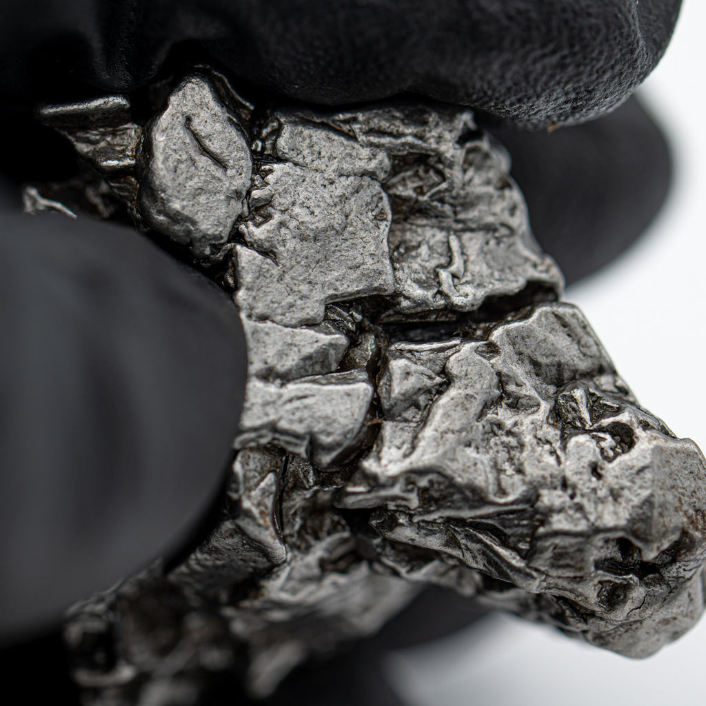 This specimen is a complete 81g Campo Del Cielo meteorite from Argentina. The IAB meteorite is thought to have fallen in 2500 BCE and was a source of valuable metals as well as an inspiration for creation myths. The impact area was originally called Piguem Nonralta by the locals, though Spanish colonists renamed it in 1576 CE as Campo del Cielo, or, "Field of Heaven."
