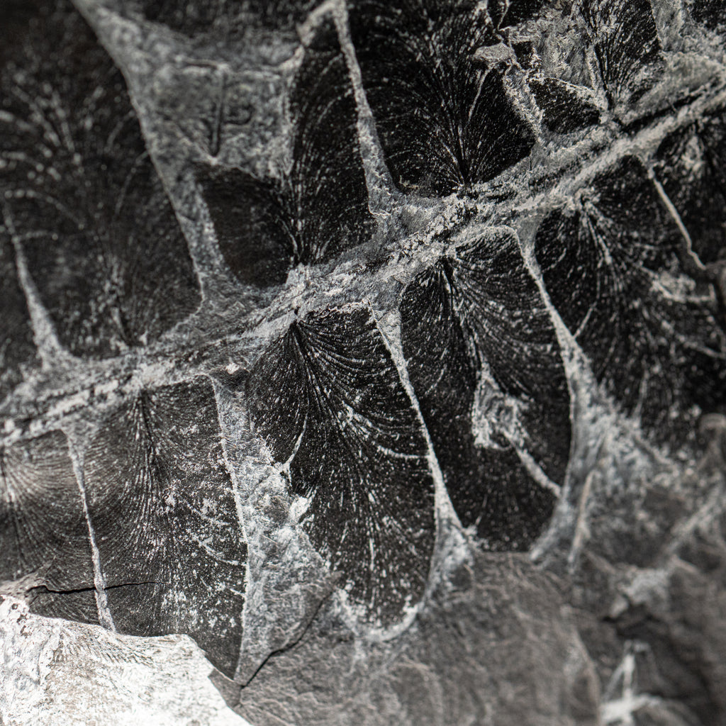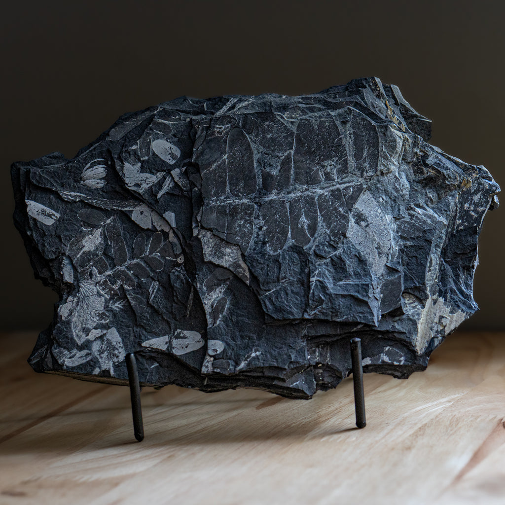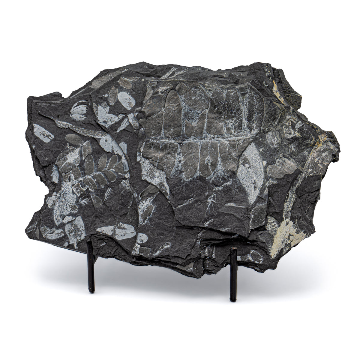 This specimen is a 8.44" fossil plant from the genus Neuropteris with fragments of Calamite stalks. This fossil was recovered from a coal bed in Pennsylvania. Mining sites like this are the perfect place to find highly detailed fossils from the Carboniferous, as coal rich areas were formed during this period.