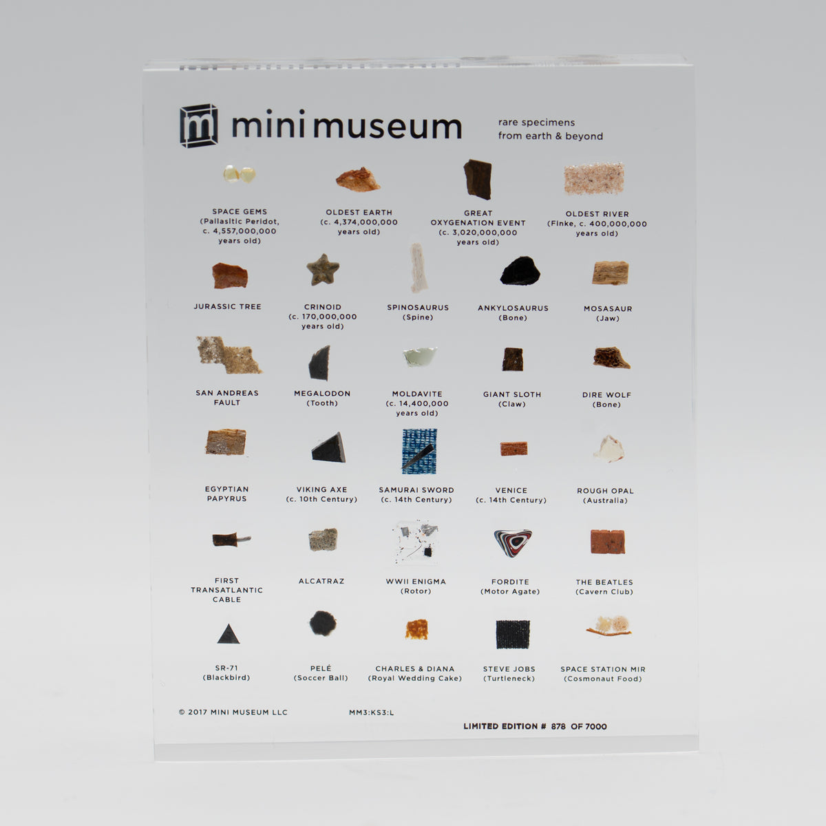 The Mini Museum is a portable collection of curiosities where every item is authentic, iconic, and labeled. It's been carefully designed to take you on a journey of learning and exploration. Each Mini Museum is a handcrafted, limited edition.
