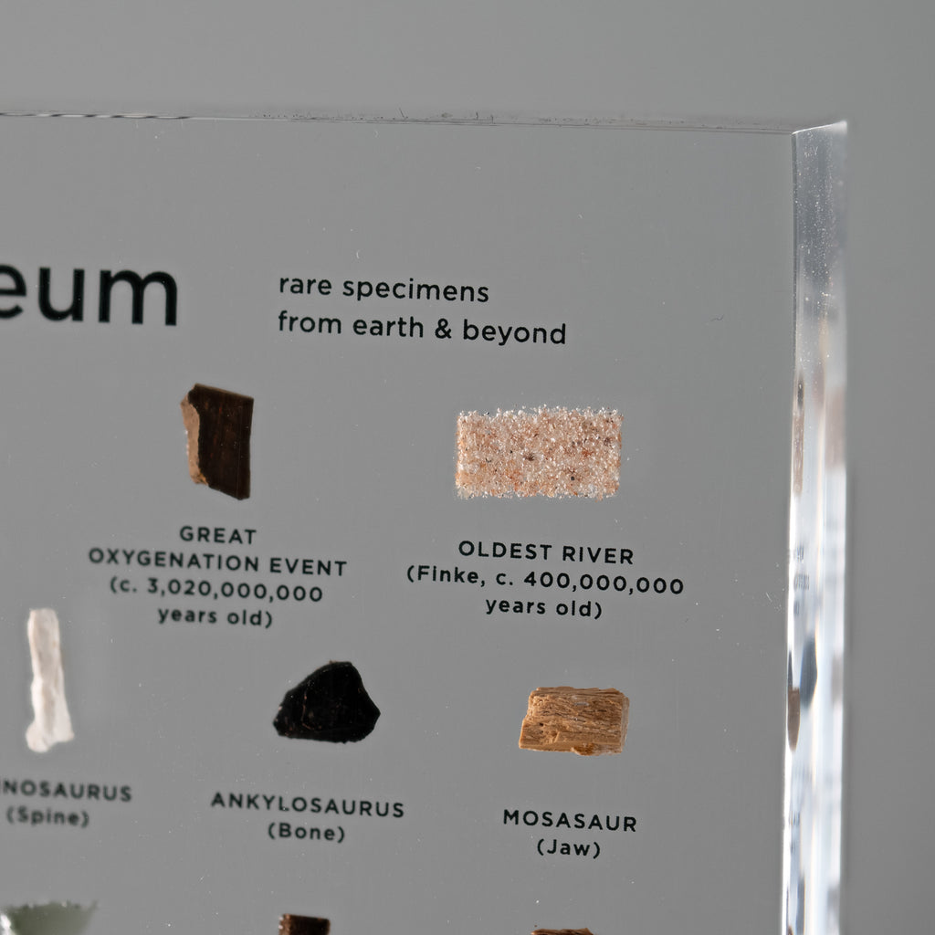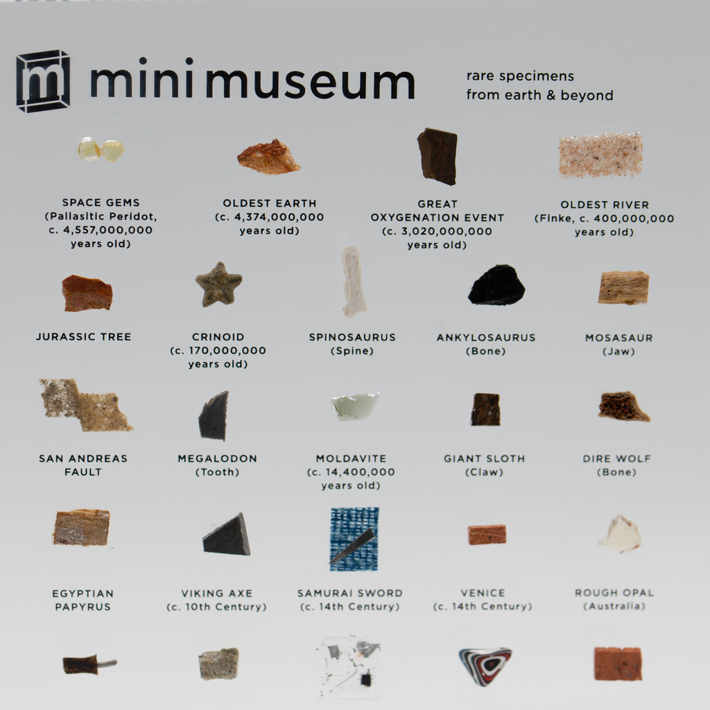 The Mini Museum is a handcrafted, limited edition collectible. The unique specimens are artfully arranged and clearly labeled. The entire collection is encased in Lucite acrylic and designed to inspire for generations.