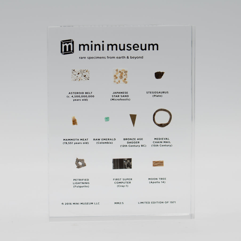 The Mini Museum is a handcrafted, limited edition collectible. The unique specimens are artfully arranged and clearly labeled. The entire collection is encased in Lucite acrylic and designed to inspire for generations.