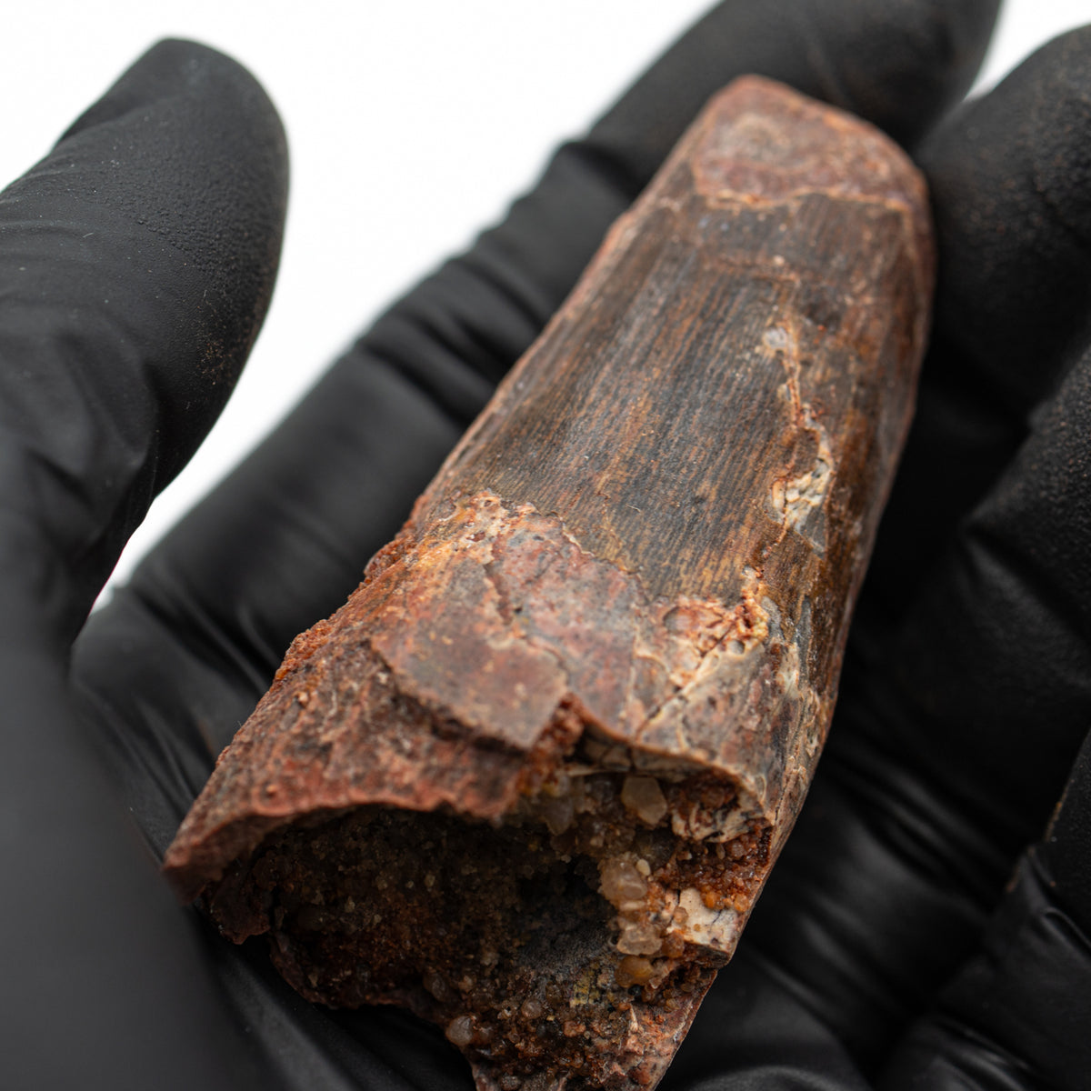 Please note: ALL Spinosaurus teeth will show some sign of repair. In addition, to protect the specimen during transit every Spinosaurus tooth is individually wrapped.