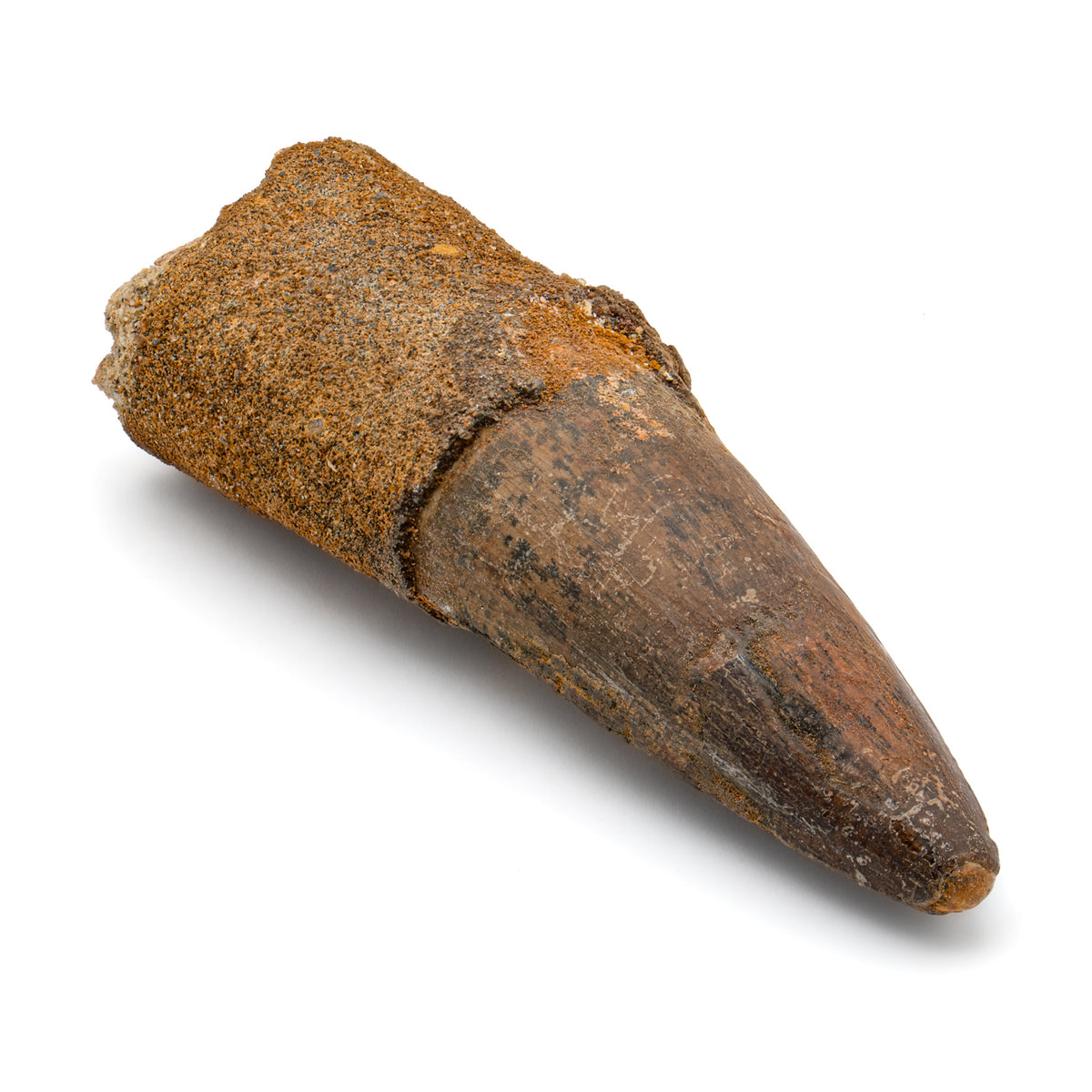 Please note: ALL Spinosaurus teeth will show some sign of repair. In addition, to protect the specimen during transit every Spinosaurus tooth is individually wrapped.